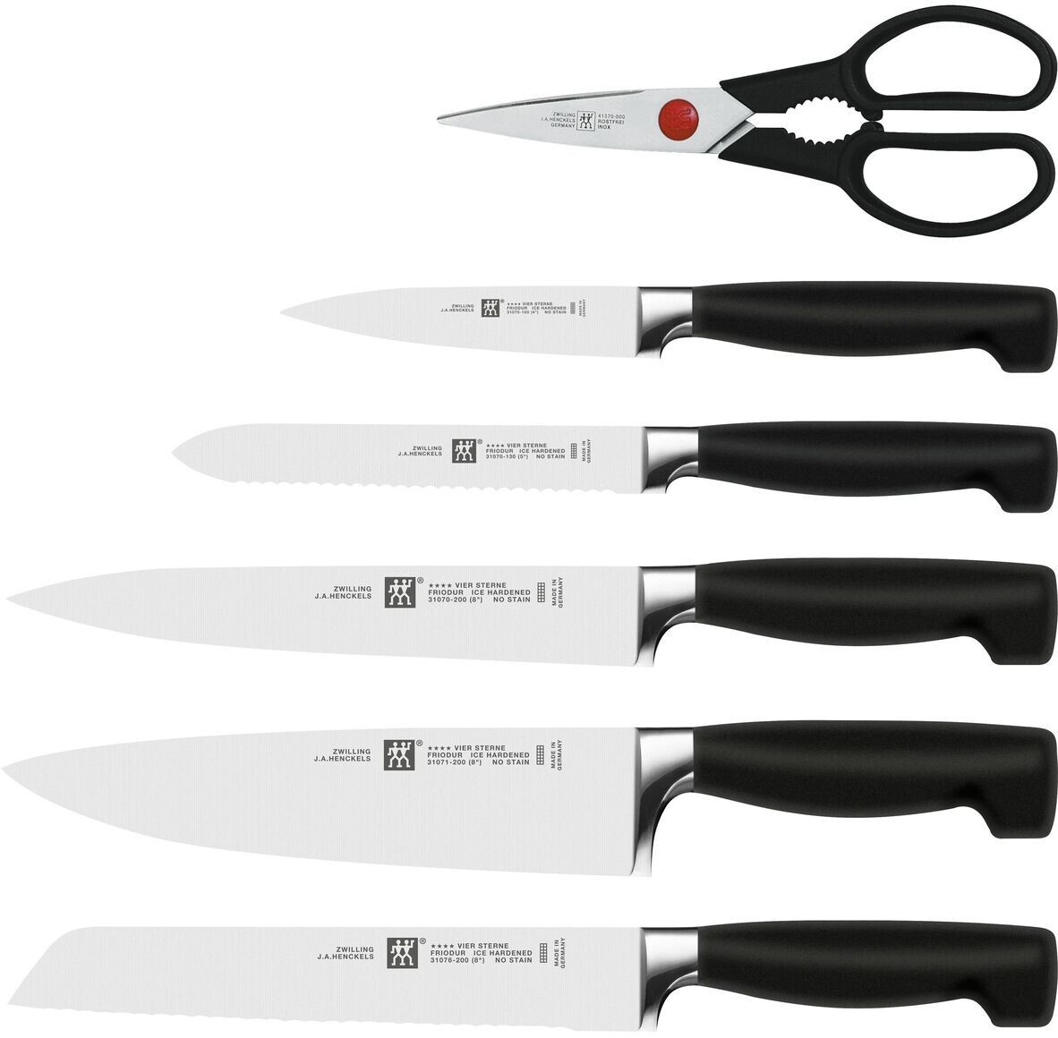 ست چاقوی zwilling سری Vier Sterne یکی از برترین انتخابها برای آشپزهای حرفهای و خانگی است که به کیفیت، دوام و تیز بودن همیشگی چاقوها اهمیت میدهند. این مجموعه شامل 7 پارچه چاقوی ضروری آشپزخانه است که در یک بلوک چوبی مجهز به فناوری تیزکن خودکار قرار گرفتهاند.