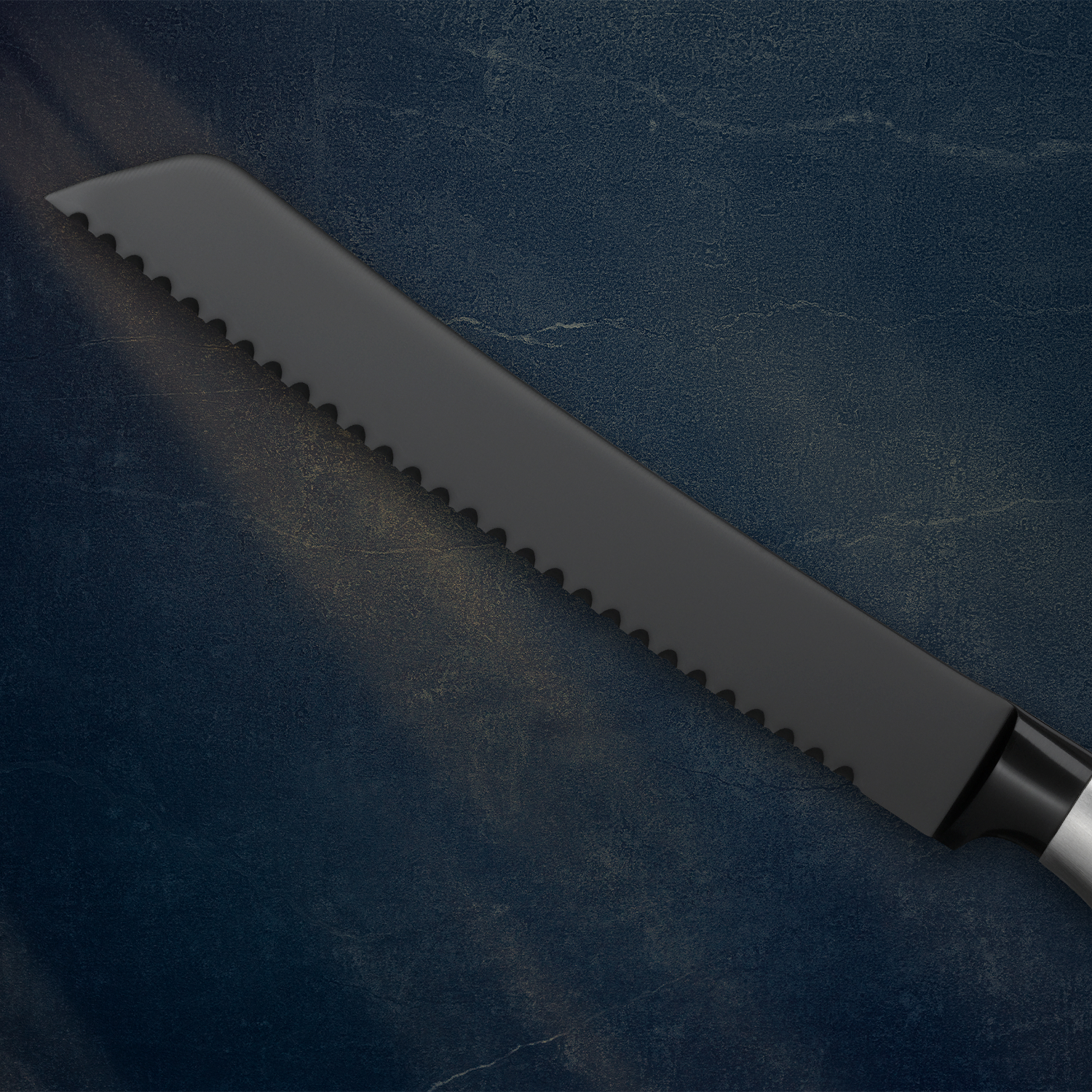 ✔ چاقوی نان (19سانتیمتر) – دارای تیغه ارهای برای برش نان و مواد پوستهدار