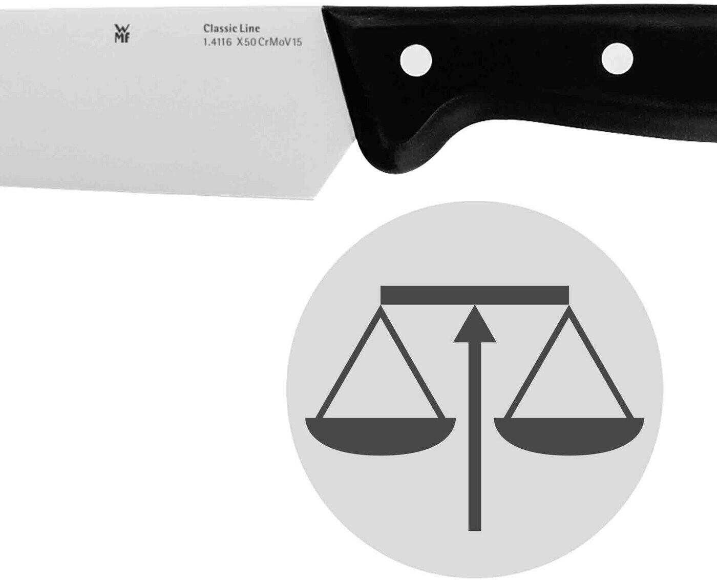ست چاقو 6 پارچه WMF Classic Line ترکیبی از طراحی زیبا و کارایی بالا را به شما ارائه میدهد. تیغههای ساخته شده از استیل ضد زنگ آلمانی دوام و برندگی طولانیمدتی دارند و دستههای ارگونومیک، کار با چاقو را راحت و ایمن میکنند. این مجموعه دارای پایه چوبی مقاوم از جنس بامبو است که علاوه بر نگهداری ایمن چاقوها، جلوهای زیبا به آشپزخانه شما میبخشد.