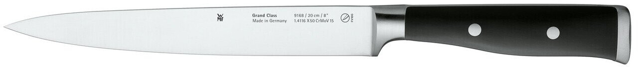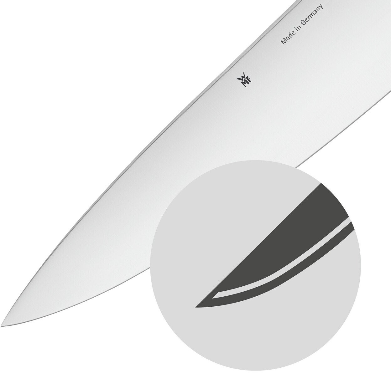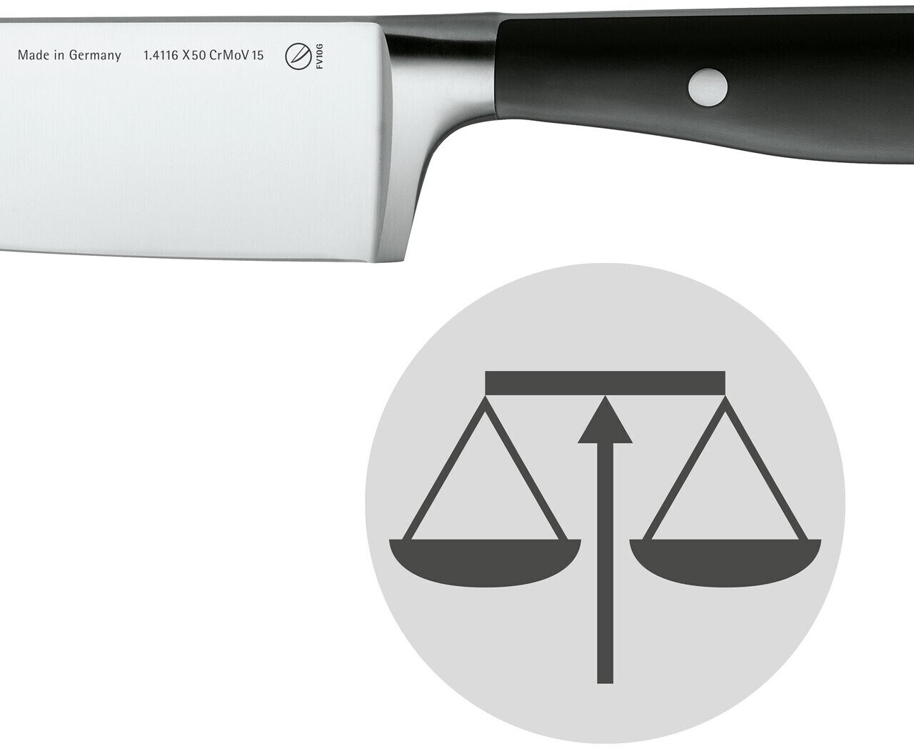 ست چاقو 6 پارچه WMF Grand Class یک مجموعه حرفهای و لوکس برای آشپزهای خانگی و حرفهای است. این ست شامل چاقوهای تیز و مقاوم از استیل ضد زنگ آلمان بوده که برشهای دقیق و راحتی را فراهم میکند. دستههای پرچ شده با طراحی ارگونومیک، کنترل و ایمنی بیشتری را هنگام استفاده ارائه میدهند. همچنین پایه FlexTec از جنس چوب بامبو طبیعی و مقاوم، نگهداری چاقوها را ایمن و بهداشتی میکند.
