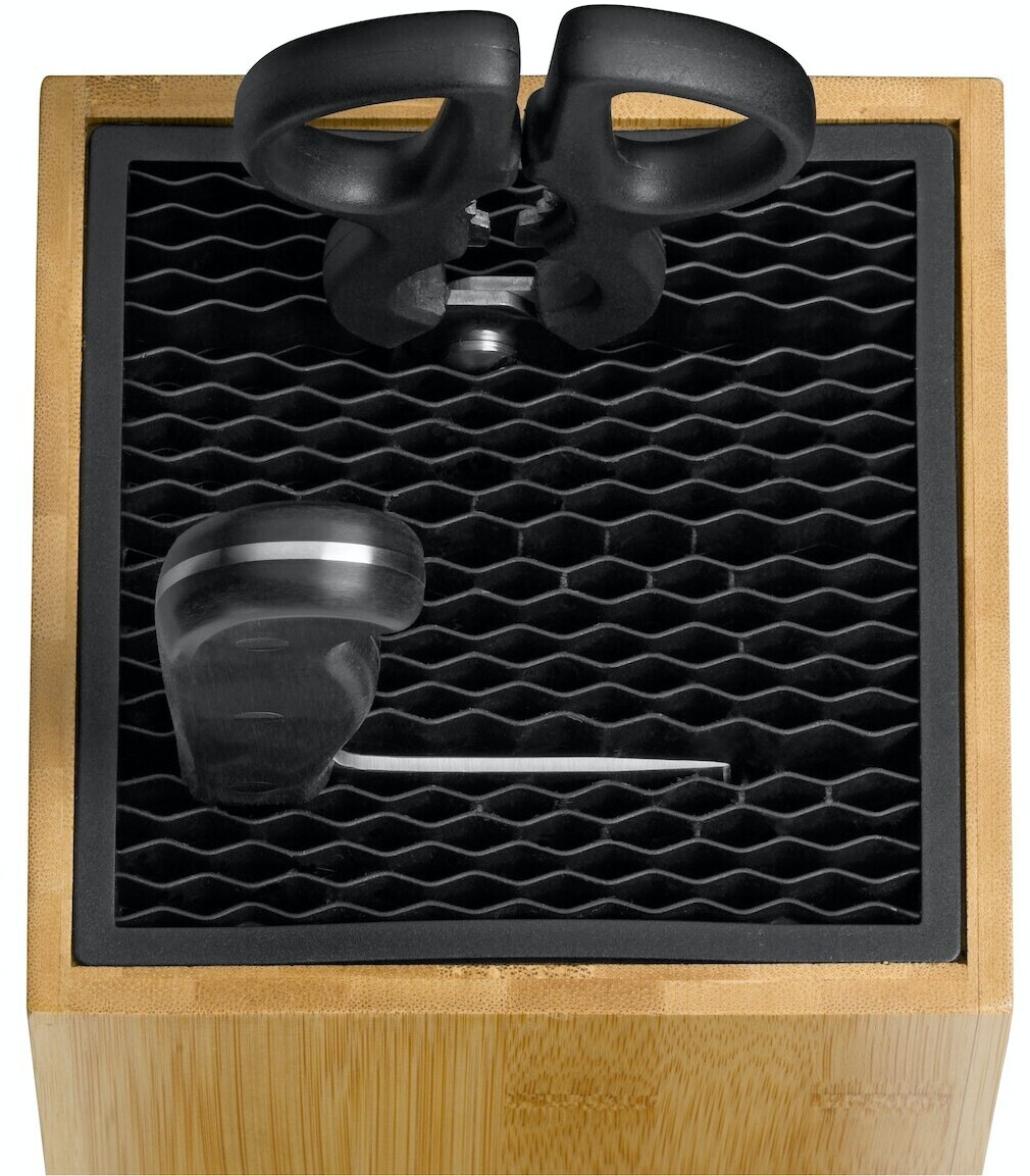 ✔ پایه چوبی مقاوم – برای نگهداری ایمن و مرتب چاقوها