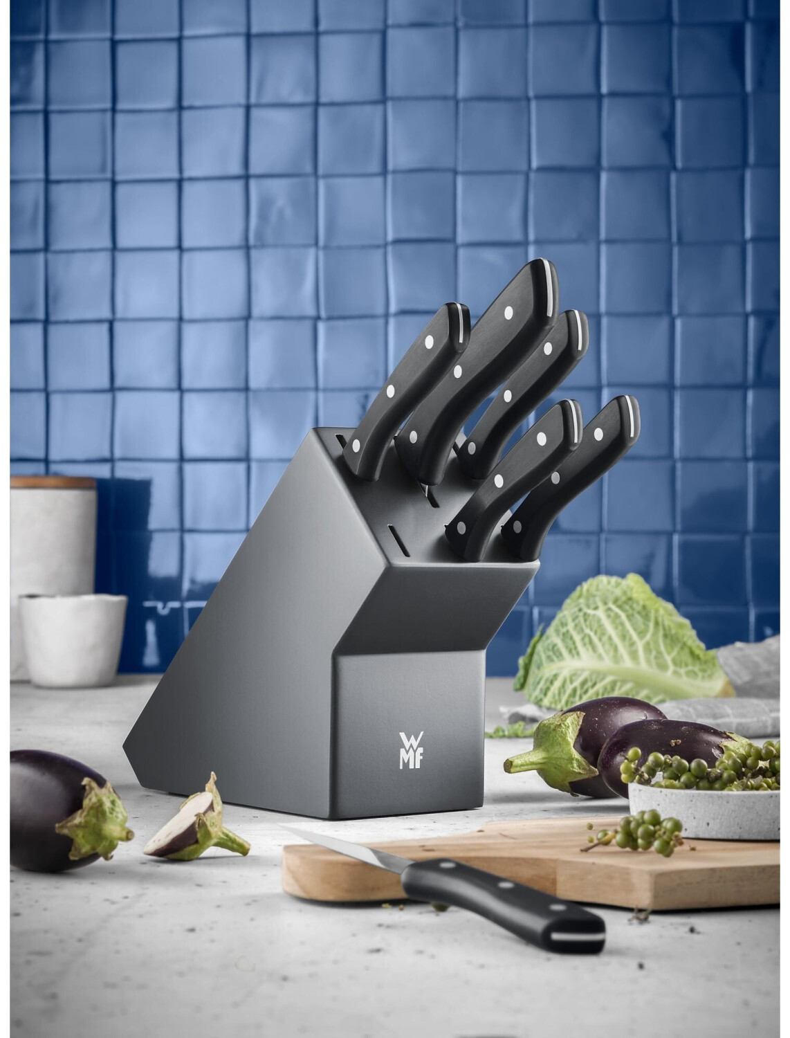 ست چاقو 7 پارچه WMF مجموعهای حرفهای و بادوام برای آشپزخانههای خانگی و رستورانی است. این ست شامل 6 عدد چاقوی باکیفیت از استیل ضد زنگ آلمانی همراه با پایه چوبی زیبا برای نگهداری ایمن چاقوها است. تیغههای بسیار تیز و طراحی دستههای ارگونومیک استفاده از این چاقوها را آسان و لذتبخش میکند.