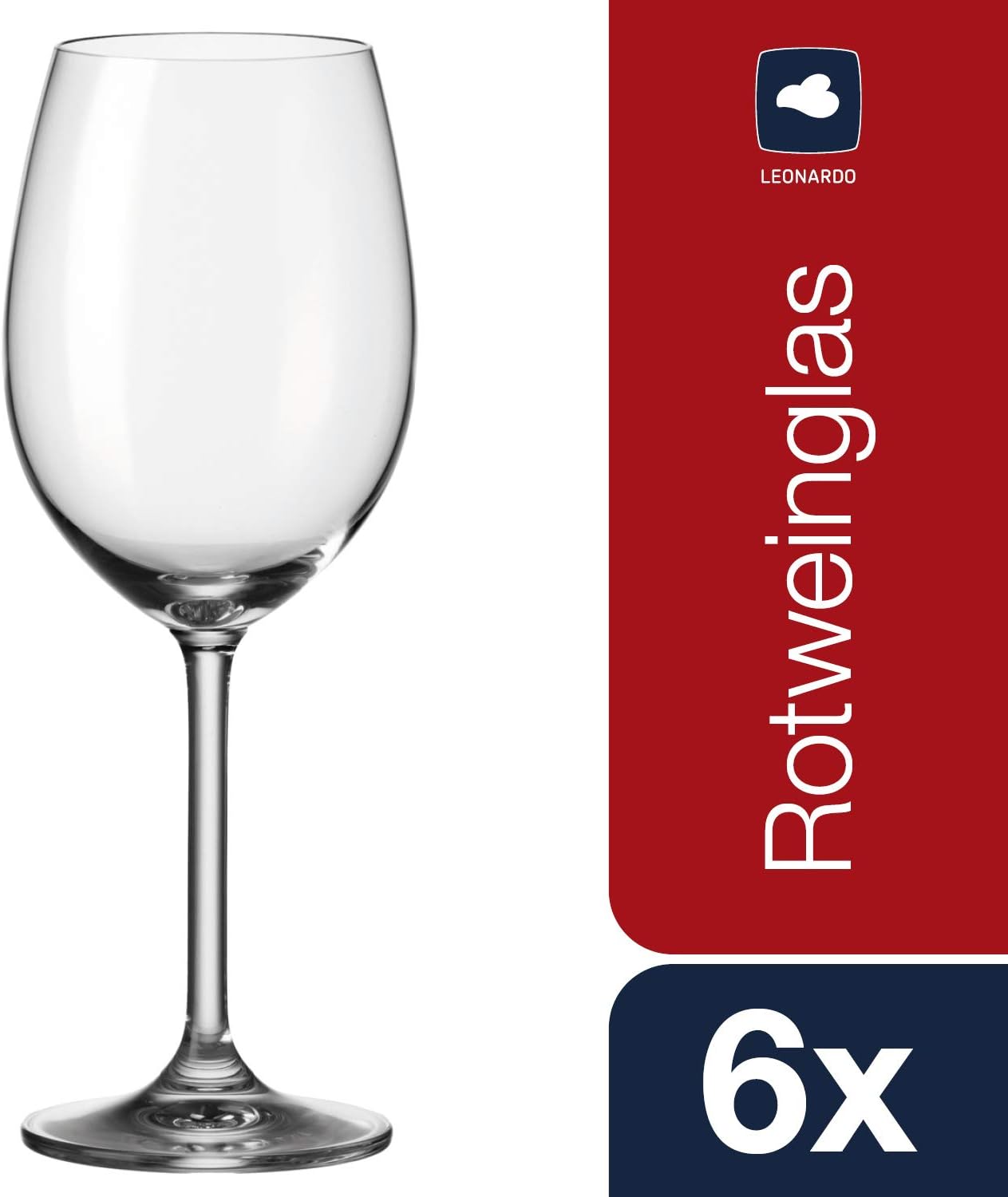 Leonardo Daily Rotwein-Glas 6er Set, Rotwein-Kelch mit Stiel, spülmaschinenfeste Wein-Gläser, Höhe 22,6 cm, 460 ml, 063316 Rotweinglas 460ml 6 Gläser