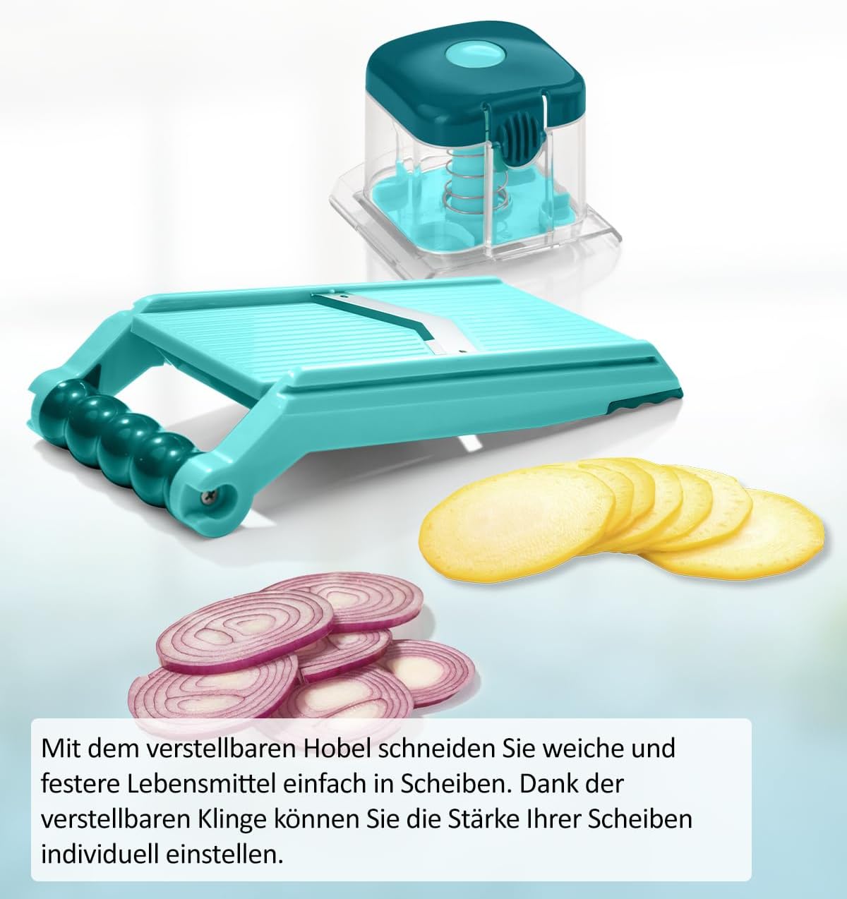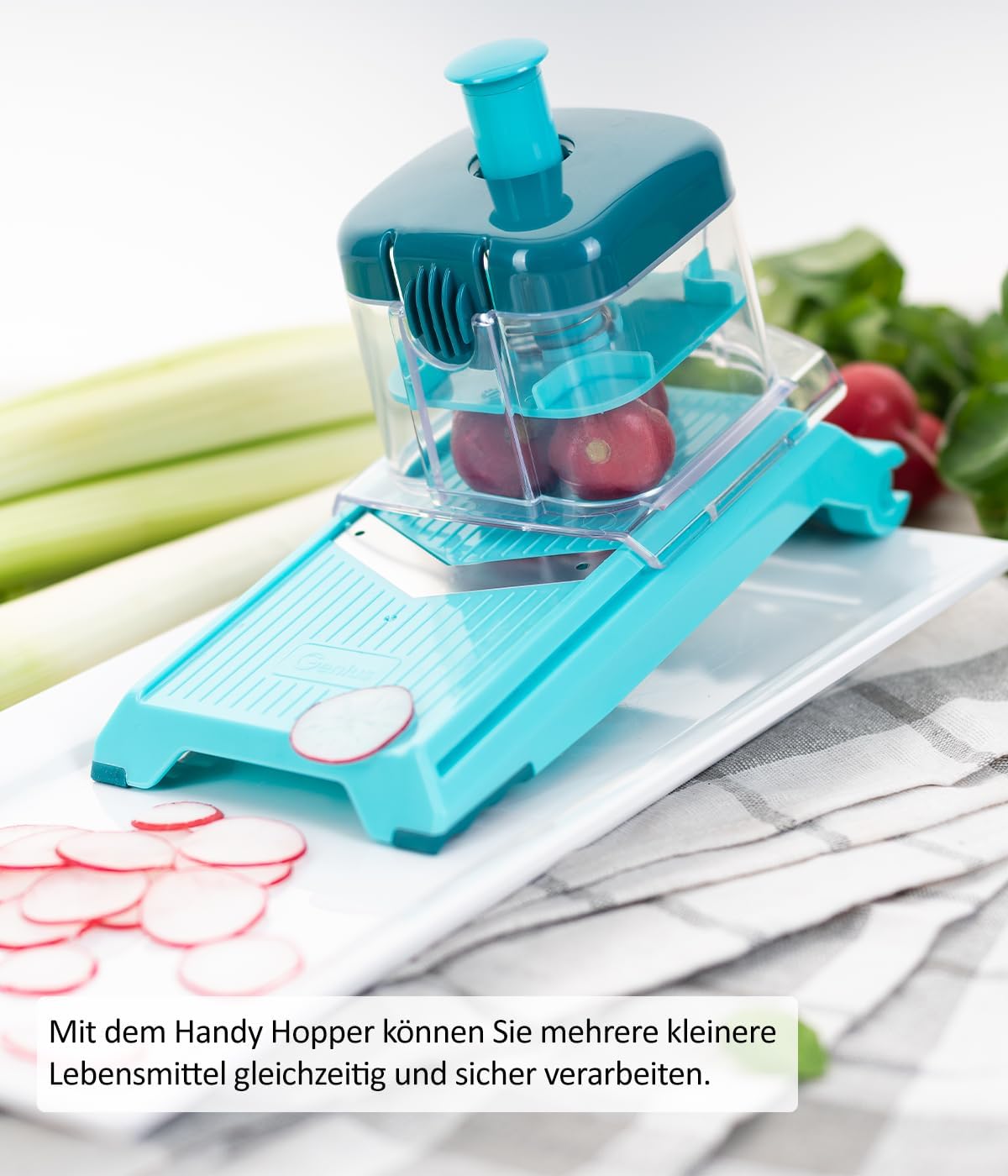 Nicer Dicer Chef Professional Verstellbarer Gemüsehobel Set 2-tlg. - Schneidehobel, Scheibenschneider, mit Handy Hopper, inkl. Schutzabdeckung, V-Klinge | قیمت یورویی 19.99€