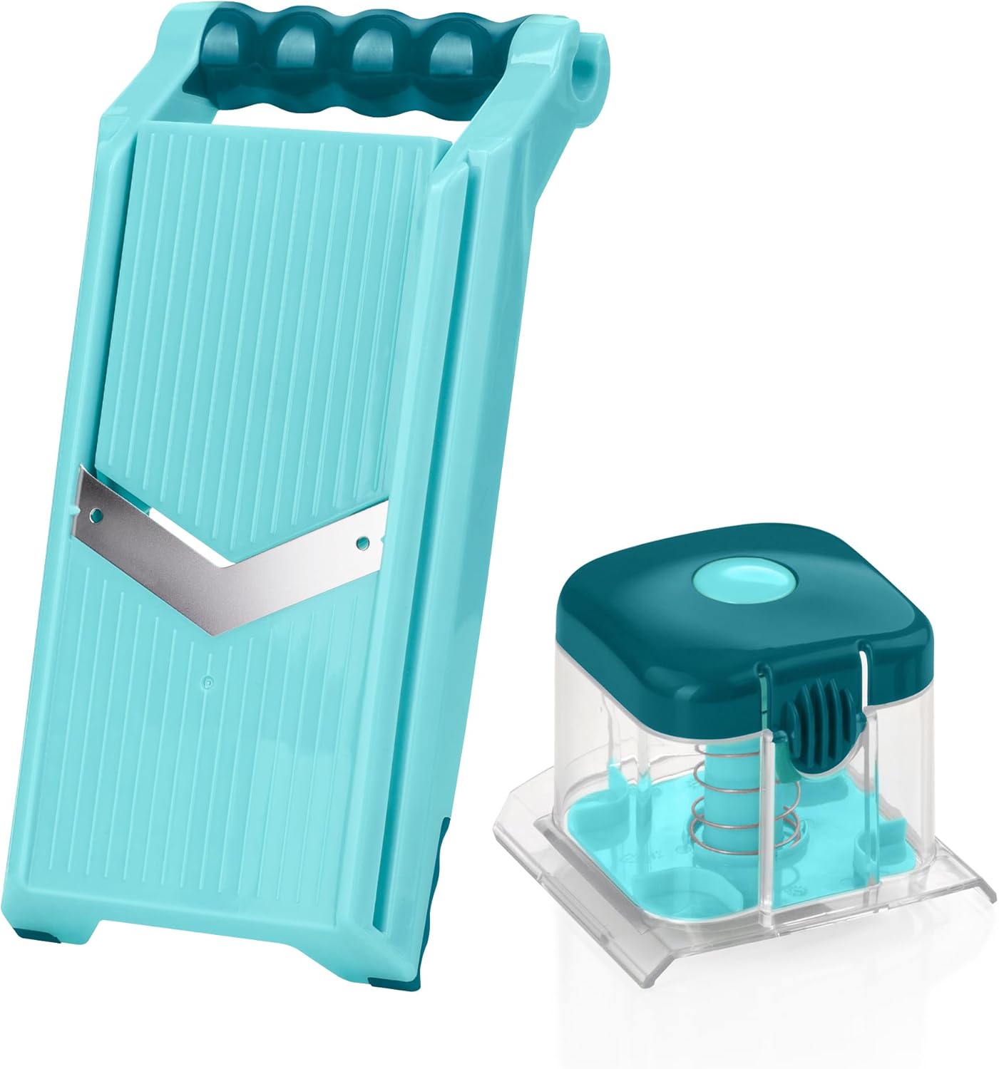 ست 2 تکه سبزیجات قابل تنظیم حرفه ای Nicer Dicer Chef. - هواپیما برش، دیسک برش، با قیف دستی، شامل پوشش محافظ، تیغه V