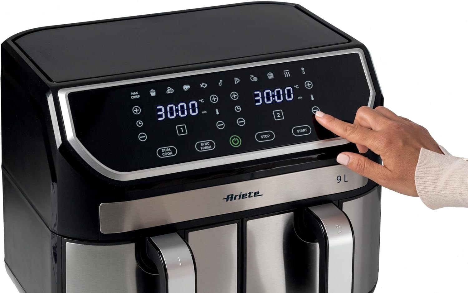 دارای عملکرد خاموشی خودکار، تایمر دیجیتال، پایه ضد لغزش، صفحه لمسی LED، و قابلیت عملکرد همزمان دو سبد با زمانبندی مستقل. ایدهآل برای تهیه سیبزمینی، مرغ، ماهی، سبزیجات، کیک و پیشغذاهای متنوع.