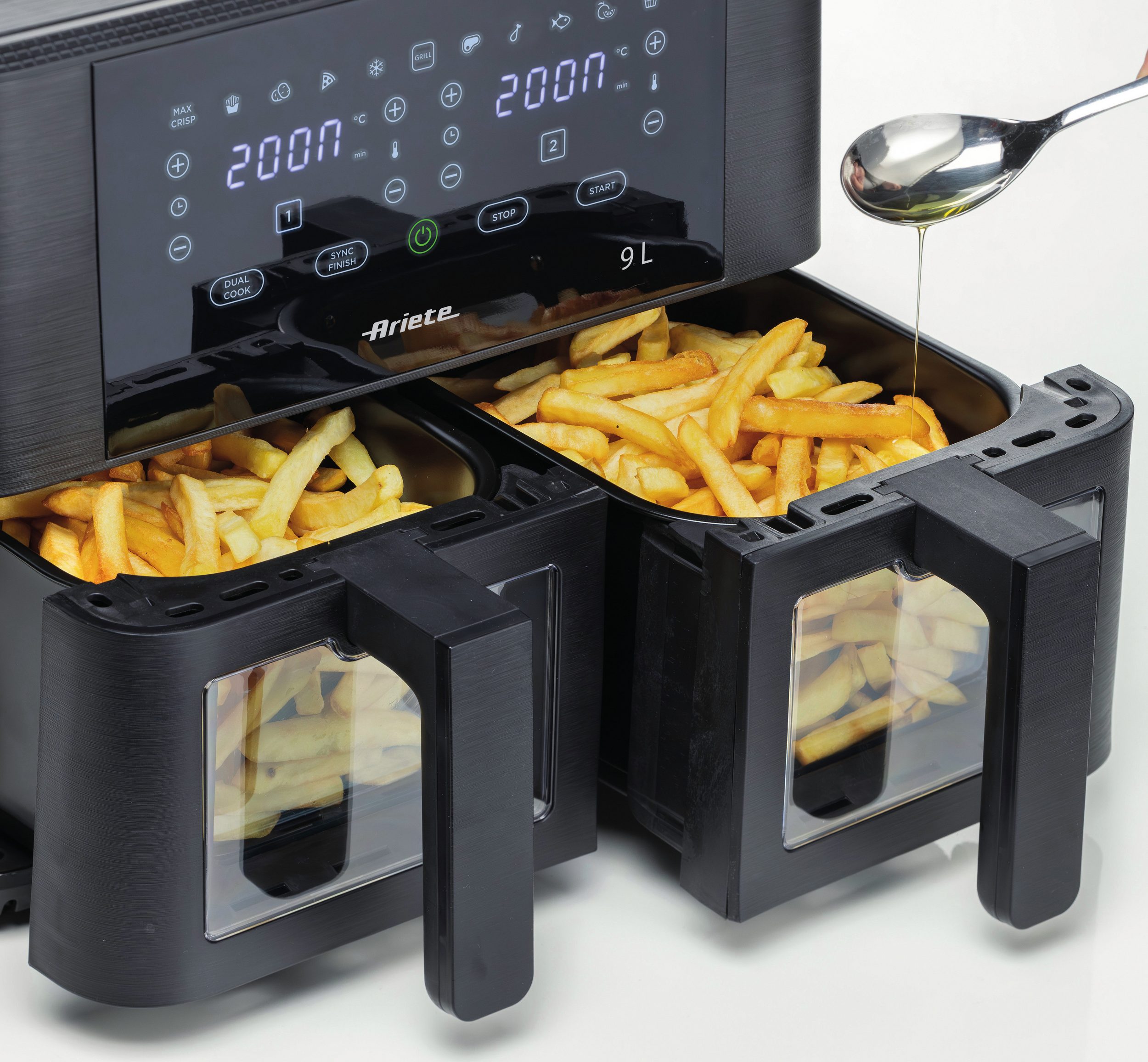 سرخ کن بدون روغن دوکاره با دو سبد جداگانه و ظرفیت کلی ۹ لیتر.