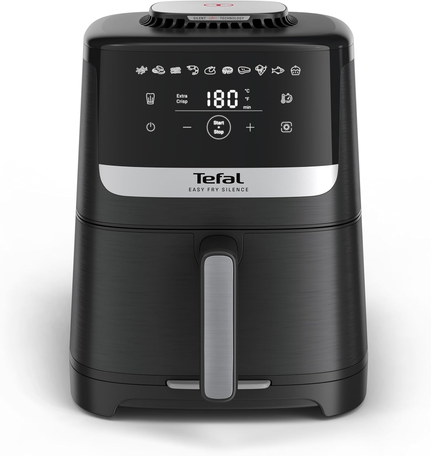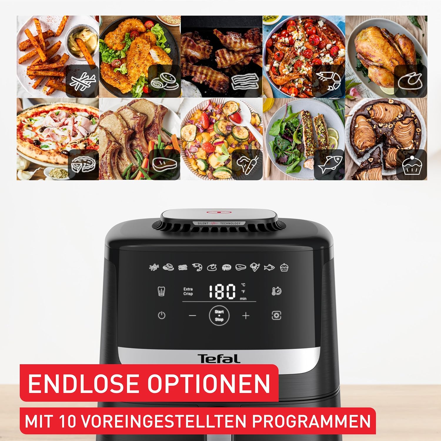 Tefal Easy Fry Silence Heißluftfritteuse, bis zu 99% weniger Fett, Silent-Technologie, 5 Liter, inkl. antihaftbeschichtetes Grillrost, von 40°C bis 220°C, spülmaschinenfest, Schwarz, EY5528E0 Mit Silent-Technology | قیمت یورویی 139.99€
