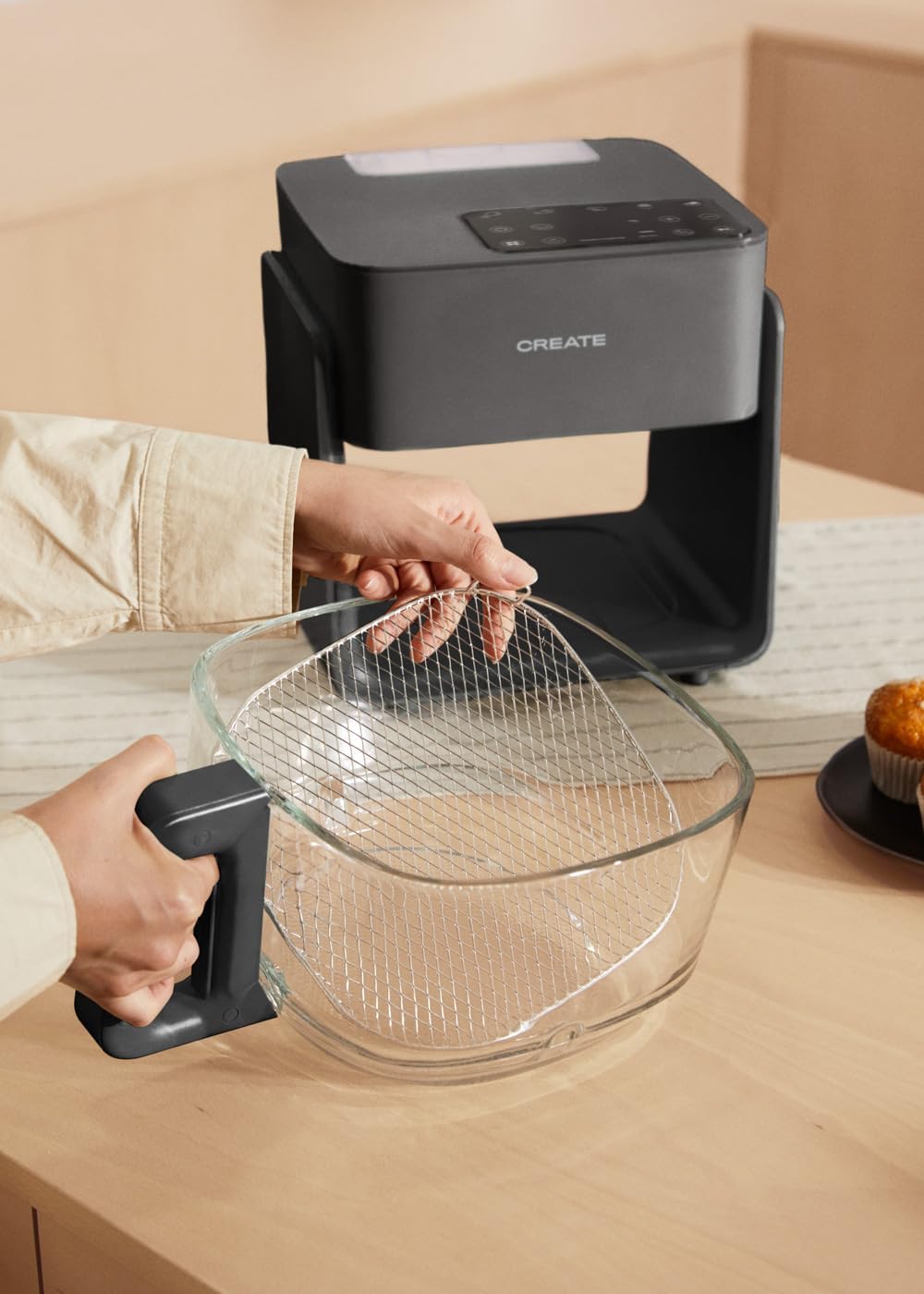 سرخ کن بدون روغن/مه پاش CREATE/AIR FRYER 4.2L با بخارپز مشکی/ظرفیت ۵-۶ پرس، ۶ برنامه، ظرف شیشهای، کنترل زمان و دما، ۱۳۰۰ وات، ۴.۲ لیتر مشکی