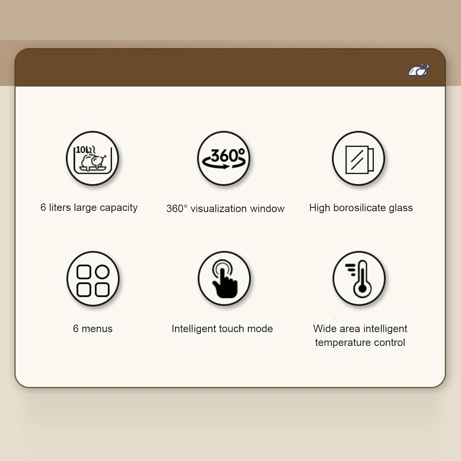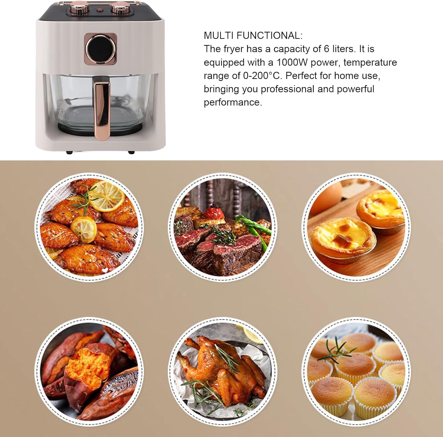 [Easy] Mit hohem Borosilikatglas ist der Luftkocher einfach zu und spülmaschige sicher, sodass mehr Zeit für köstliches Essen genießen kann. [Vielseitiges Kochen] Diese Fryer kann mühelos mühelos an den anderen Ernährungsbedürfnissen gebrauchen, kocht, dehydrieren und vieles mehr bestreiten. [Weniger Öl, knuspriger Geschmack] Heißluftkreislaufbraten erzeugt eine knusprige äußere und zarte innere Textur mit weniger Öl, die das originale Essen einrückt. [Smart Temperatur Control] Die Fritteus verfügt über eine weite Smart-Temperaturregelung und ein 360-Grad-visueller Fenster für die Kochergebnisse. [Starke Leistung] Mit einer 6-Liter-Kapazität, einer Leistung von 1000 W und einem Temperaturbereich von 0 bis 200 ° C ist dieser Frittyer für den Heimgebrauch gedacht. | قیمت یورویی : 150.97€