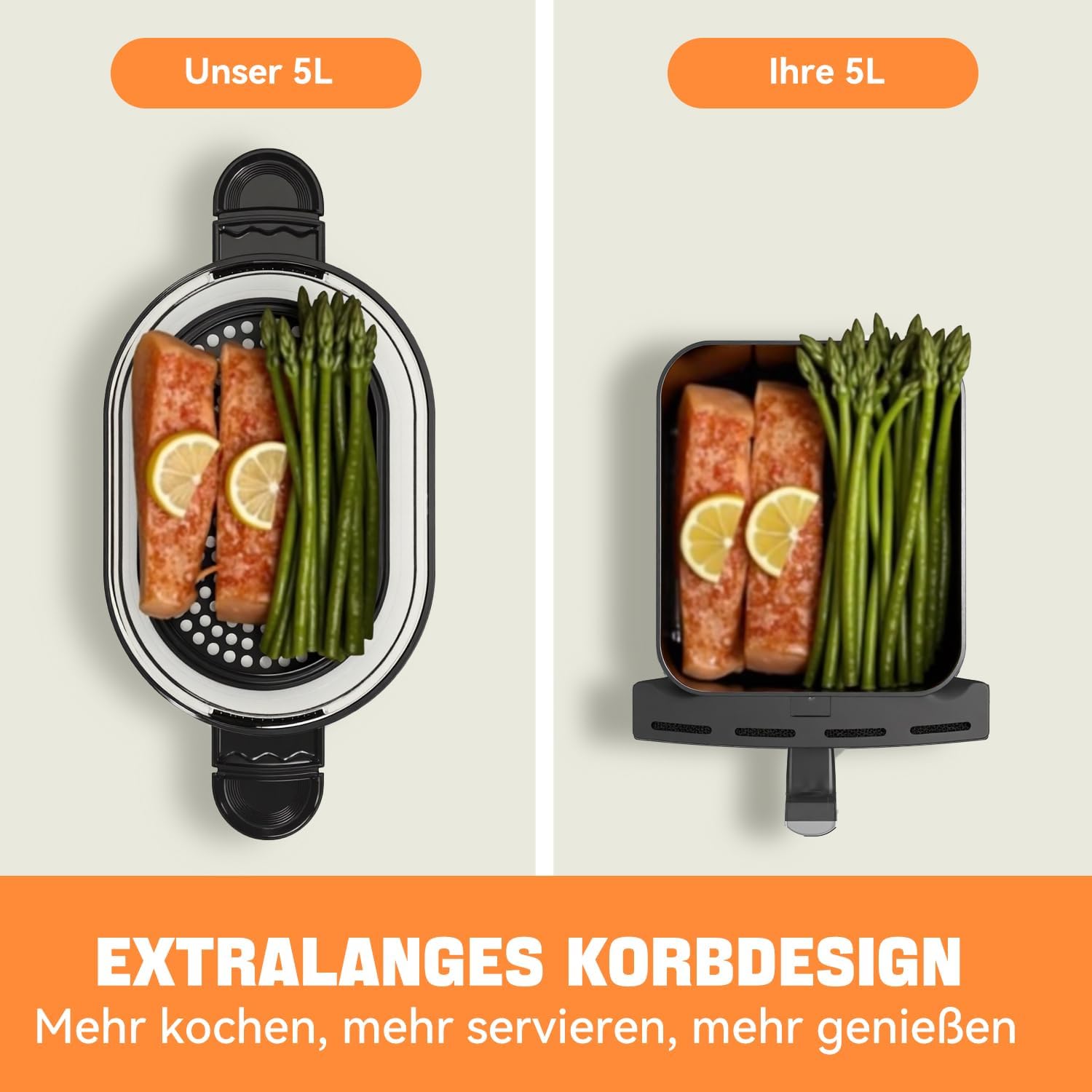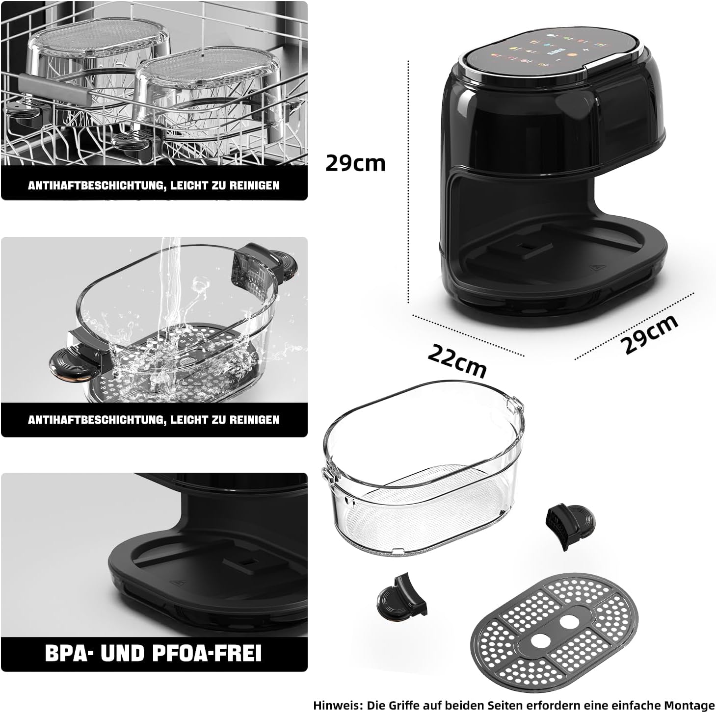 Großzügiger 5L Fassungsvermögen & Vielseitigkeit: Ideal für Familien! Die großzügige 5L-Kapazität dieser Heißluftfritteuse bietet ausreichend Platz für Mahlzeiten aller Art. Nutzen Sie die 9 voreingestellten Menüs zum einfachen Frittieren, Backen, Grillen oder Erwärmen–gesünder und schneller als je zuvor. Sichtbares & Einfaches Kochen mit Glaskorb: Genießen Sie das Kocherlebnis! Unsere KAITOL Heißluftfritteuse mit transparentem Glaskorb (5L Fassungsvermögen) und großem Sichtfenster ermöglicht es Ihnen, den Garprozess jederzeit im Blick zu behalten – ohne Hitze zu verlieren. Der spülmaschinengeeignete Korb macht die Reinigung zum Kinderspiel. Intuitive Steuerung & Präzision: Bedienen Sie Ihren Air Fryer mühelos! Das moderne digitale LED-Touchdisplay bietet präzise Kontrolle über die Garzeit (1-60 Min.) und Temperatur (60-190°C) für perfekte Ergebnisse bei jedem Gericht. Perfekt Knusprig & Gesund Genießen: Erzielen Sie die perfekte Knusprigkeit! Die spezielle "Max Crisp"-Funktion Ihrer KAITOL Air Fryer garantiert unglaublich knusprige Ergebnisse mit bis zu 85% weniger Fett als bei herkömmlichem Frittieren. Gesundes Genießen ohne Kompromisse. Transparenz & Komfort vom Start bis zum Servieren: Mehr als nur ein Gerät! Von der ersten Minute bis zum perfekten Garpunkt: Das große Sichtfenster und der klare Glaskorb bieten volle Transparenz. Kombinieren Sie dies mit der einfachen Bedienung über das Touchdisplay–Ihr KAITOL Air Fryer macht gesundes Kochen zum puren Vergnügen. | قیمت یورویی : 90.99€