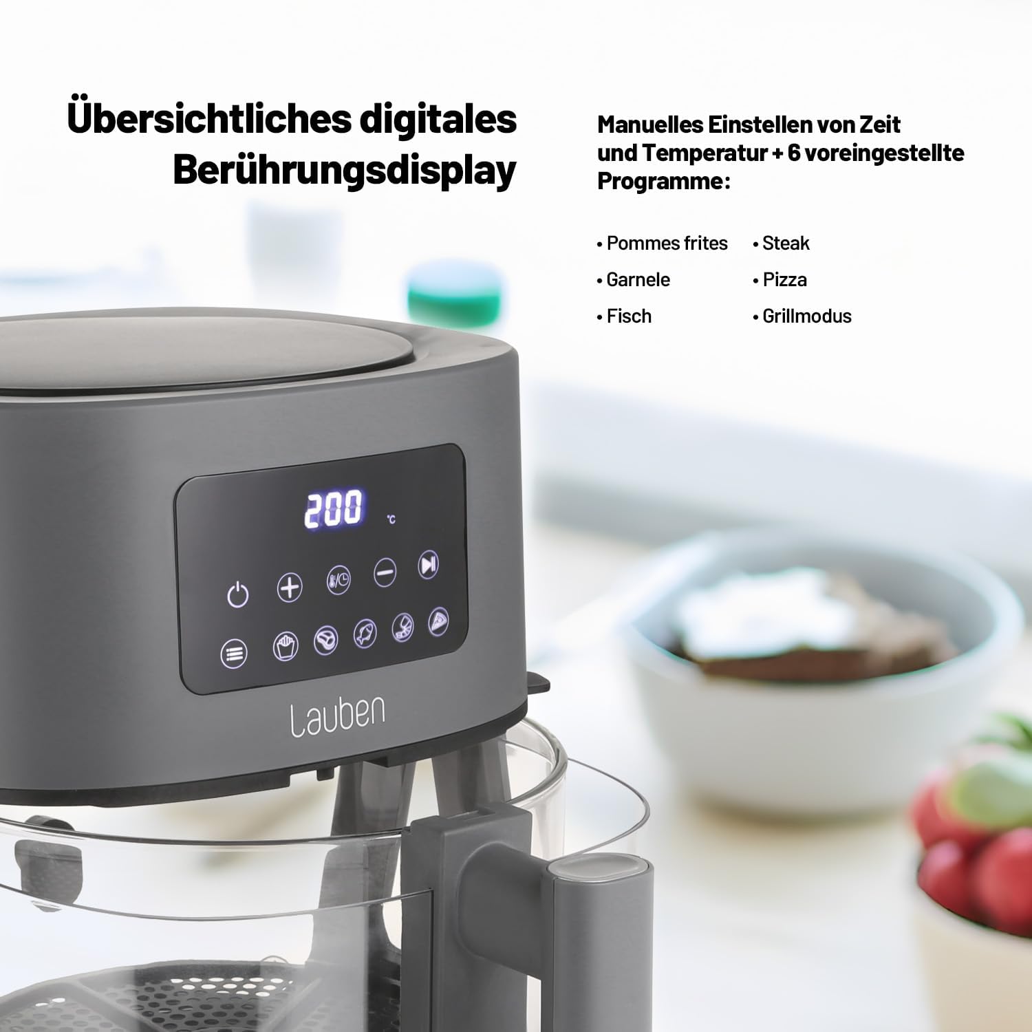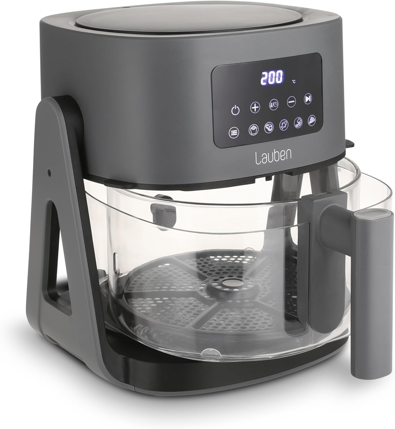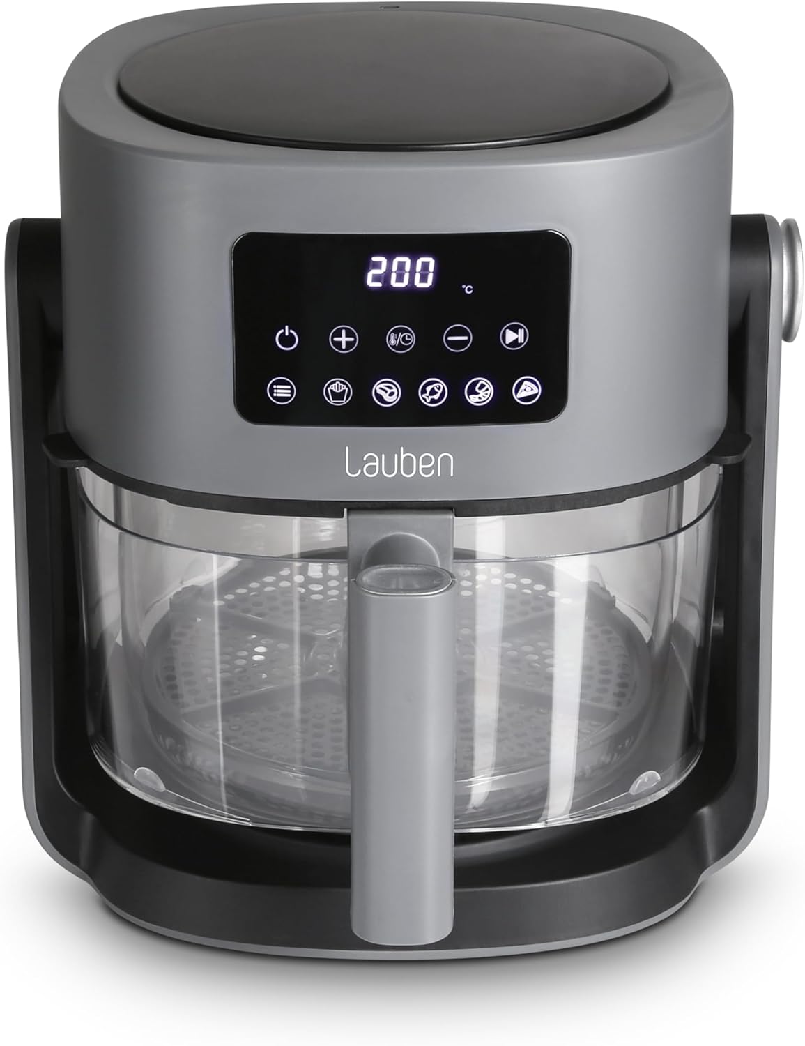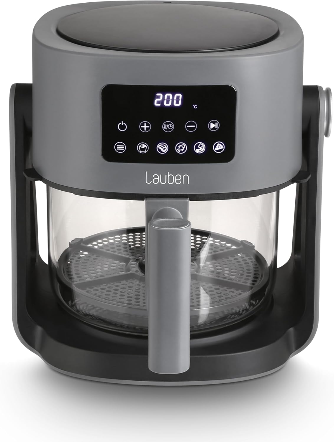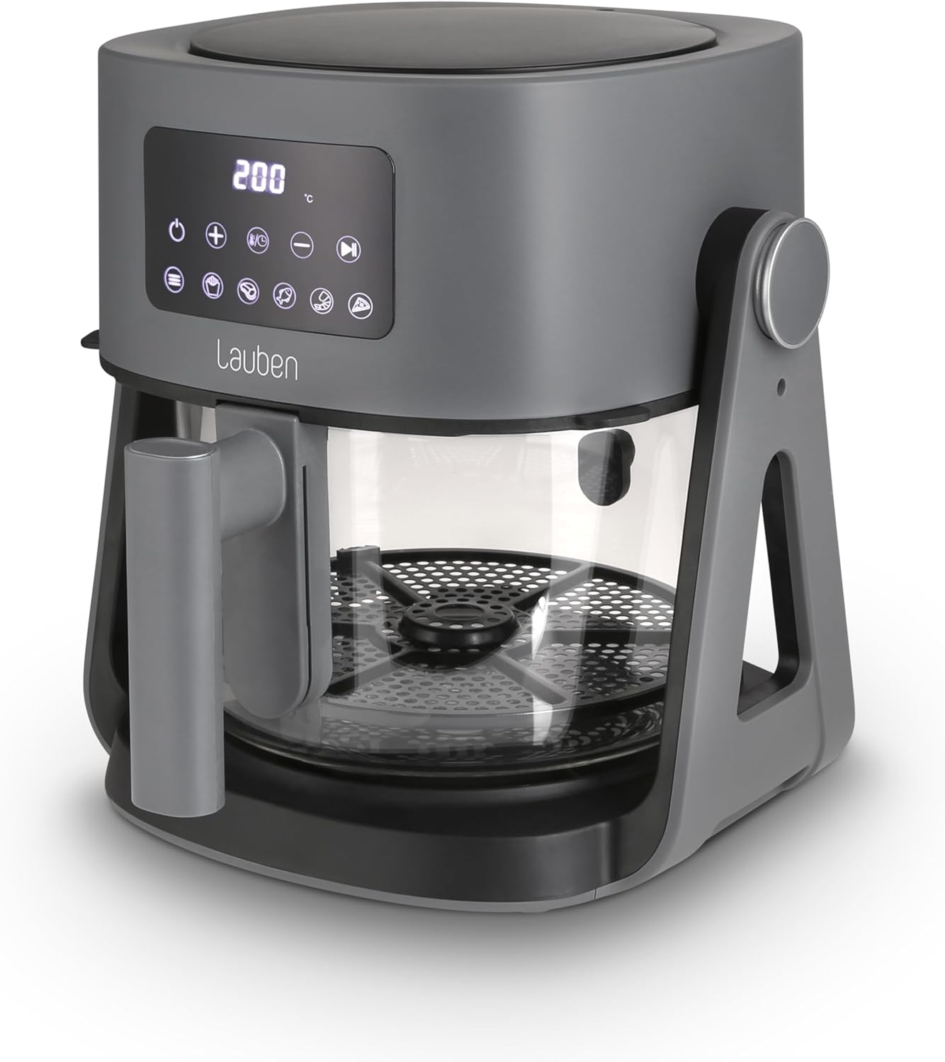 Lauben Glass&Grill Air Fryer 3in15500BG Heißluftfritteuse mit Inhalt 5,5 l, Frittierkorb aus Glas, 6 Programme + Manuelles Einstellen, 3in1 - kann als Grill und Bratpfanne verwendet werden, PFOA free | قیمت یورویی 119.99€