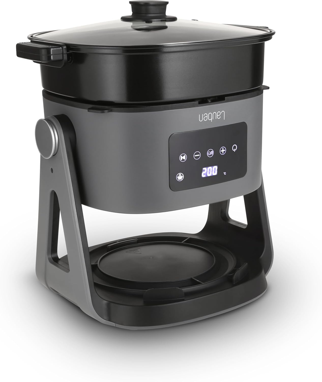 Lauben Glass&Grill Air Fryer 3in15500BG Heißluftfritteuse mit Inhalt 5,5 l, Frittierkorb aus Glas, 6 Programme + Manuelles Einstellen, 3in1 - kann als Grill und Bratpfanne verwendet werden, PFOA free لینک آمازون : https://www.amazon.de/dp/B0D5ML6TW8?th=1&psc=1 سبد شیشهای منحصر به فرد و پوشش ایمنی - سبد سرخکن شیشهای مزایای متعددی دارد. کاملاً ایمن است، زیرا برخلاف تفلون یا آلومینیوم، هیچ طعم یا بویی در غذا باقی نمیگذارد. به علاوه، همیشه میتوانید وضعیت غذای خود را ببینید. سبد سرخکن شیشهای توسط یک پوشش ایمنی محافظت میشود تا از سوختگی جلوگیری شود. ۶ برنامه - به طور شهودی از طریق صفحه نمایش دیجیتال شفاف، از بین ۶ برنامه از پیش تعیین شده برای سرخ کردن سیب زمینی سرخ کرده، گوشت یا کباب کردن - سیب زمینی سرخ کرده، استیک، ماهی، میگو، پیتزا، حالت گریل - انتخاب کنید. همچنین میتوانید زمان و دما را به صورت دستی تنظیم کنید. به لطف سبد شیشهای منحصر به فرد با دید ۳۶۰ درجه و روشنایی داخلی، میتوانید همیشه روند پخت و پز را زیر نظر داشته باشید. ۳ در ۱: سرخکن بدون روغن، گریل، ماهیتابه - این سرخکن بدون روغن دارای فناوری منحصر به فرد چرخش ۱۸۰ درجه در قسمت بالایی است که همراه با استفاده از ماهیتابه عمیق یا ماهیتابه گریل، امکانات آمادهسازی غذا را گسترش میدهد. تا ۸۰٪ چربی کمتر - با کمک گردش هوای پرسرعت ۳۶۰ درجه، میتوانید هر غذایی، از جمله پنیر سرخشده و شنیسل مورد علاقهتان را با تا ۸۰٪ چربی کمتر تهیه کنید. نور مادون قرمز، نتایج یکنواخت را تضمین میکند. آموزش ویدیویی - برای مشاهده آموزش ویدیویی، کافیست کد QR روی محصول را اسکن کنید. همچنین میتوانید از طریق لینکی که روی بستهبندی یا در دستورالعملها وجود دارد، به آن دسترسی پیدا کنید.