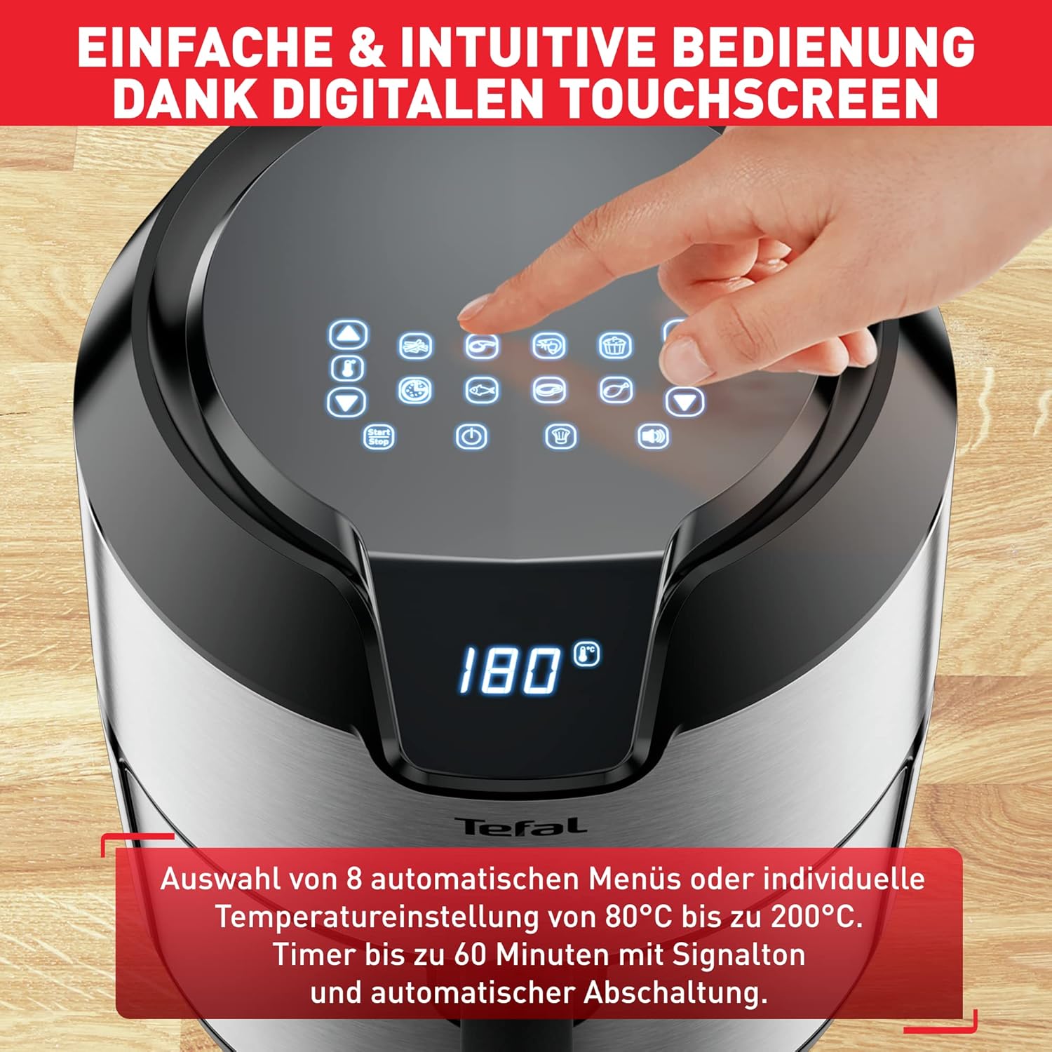 Tefal EY401D Heißluftfritteuse Easy Fry Deluxe XL | Air Fryer | 1500 W | 4,2 L für 6 Portionen | 8 automatische Programme | Digitales Display | energiesparend | gesunde Friteuse ohne Öl | Edelstahl | قیمت یورویی 91.56€