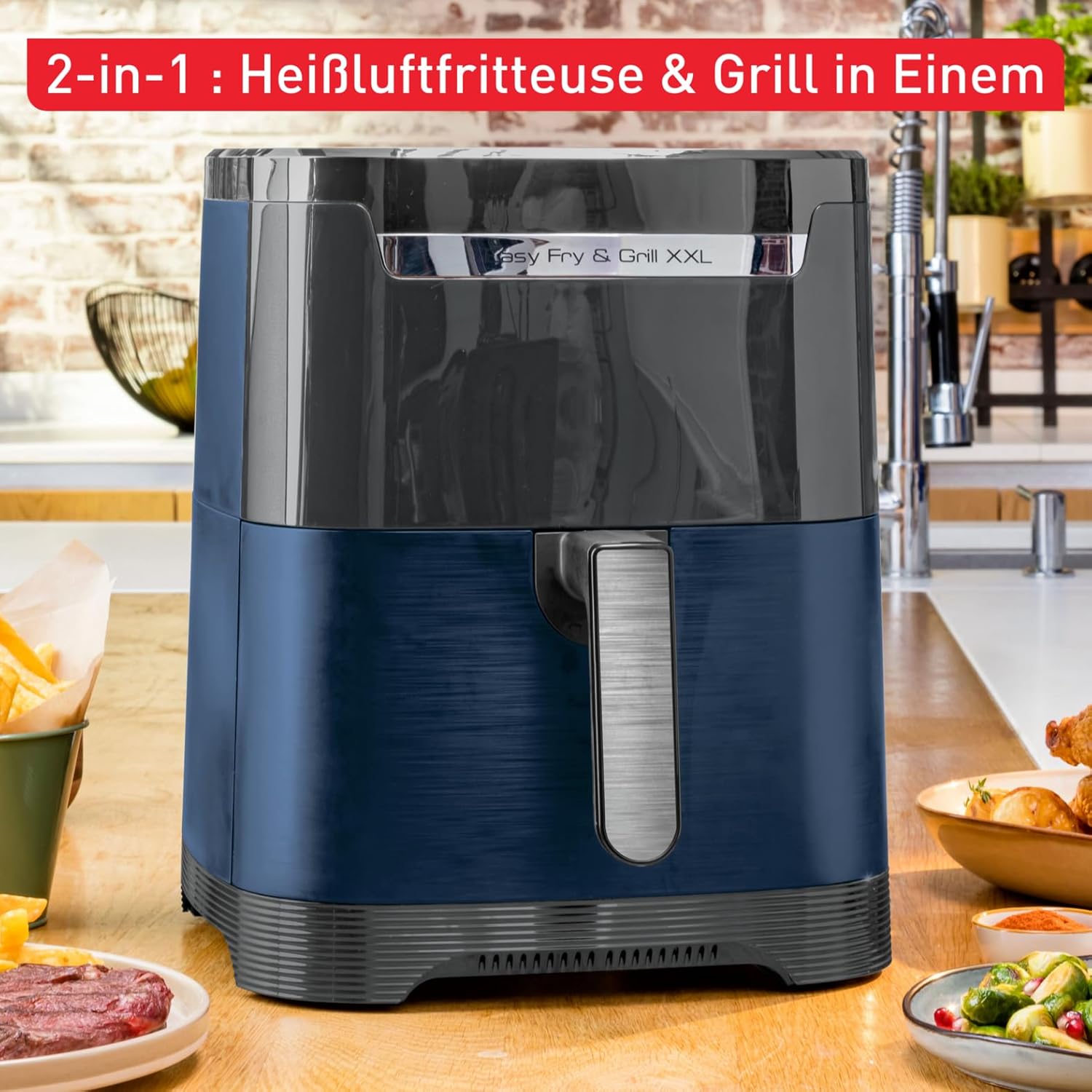 Tefal EY8014 Easy Fry & Grill XXL Heißluftfritteuse | 6,5 L Fassungsvermögen | 2-in-1 Technologie | zeitsparend | 8 automatische Garprogramme | Grill-Technologie | Wanted Blue, Blau | قیمت یورویی 119.9€