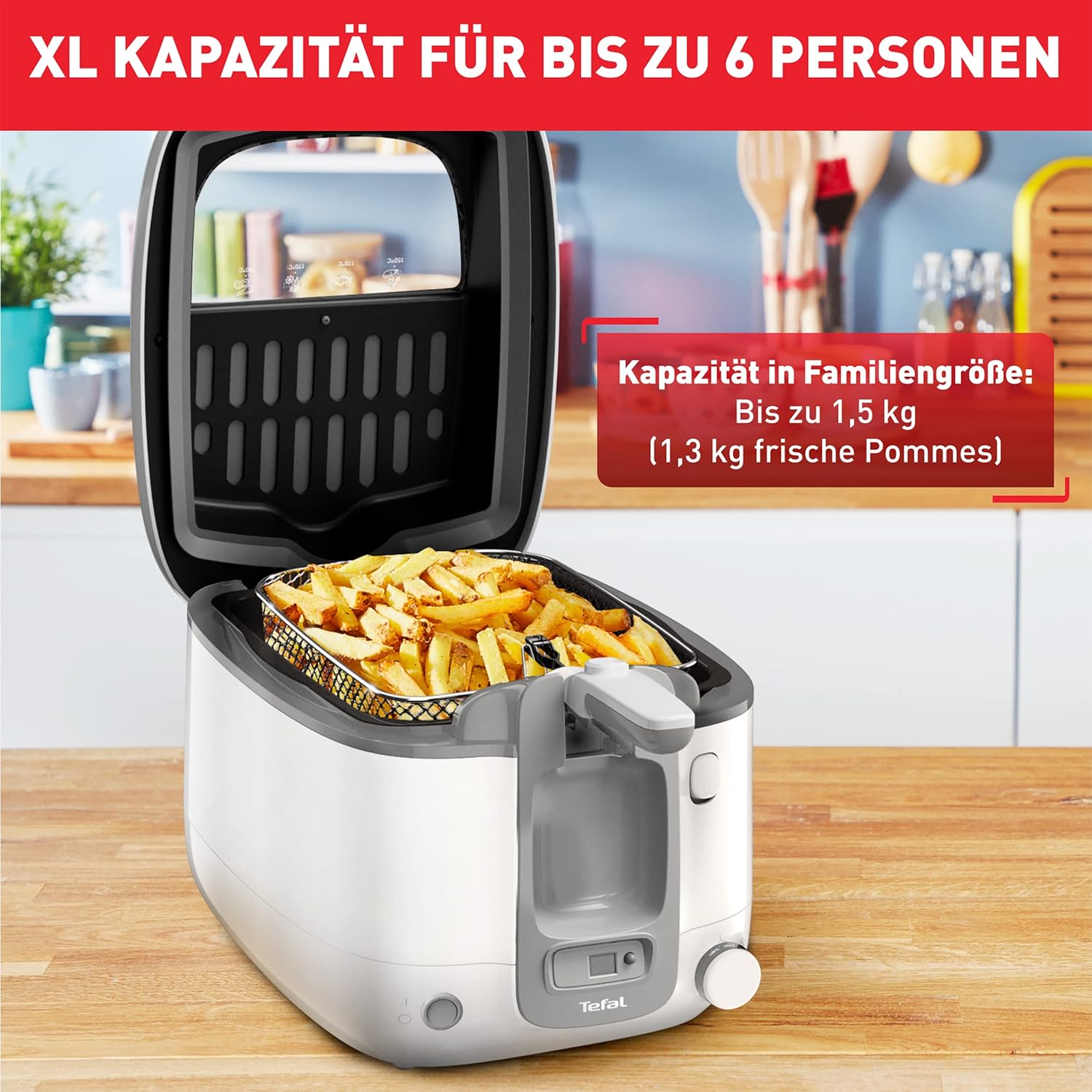 Tefal FR3141 Super Uno Fritteuse | Thermogehäuse | bis zu 1,2 kg Fassungsvermögen | digitaler Timer | Anti-Geruchs-Filterkassette | herausnehmbarer, antihaftbeschichteter Innenbehälter | Weiß/Grau | قیمت یورویی 114.9€