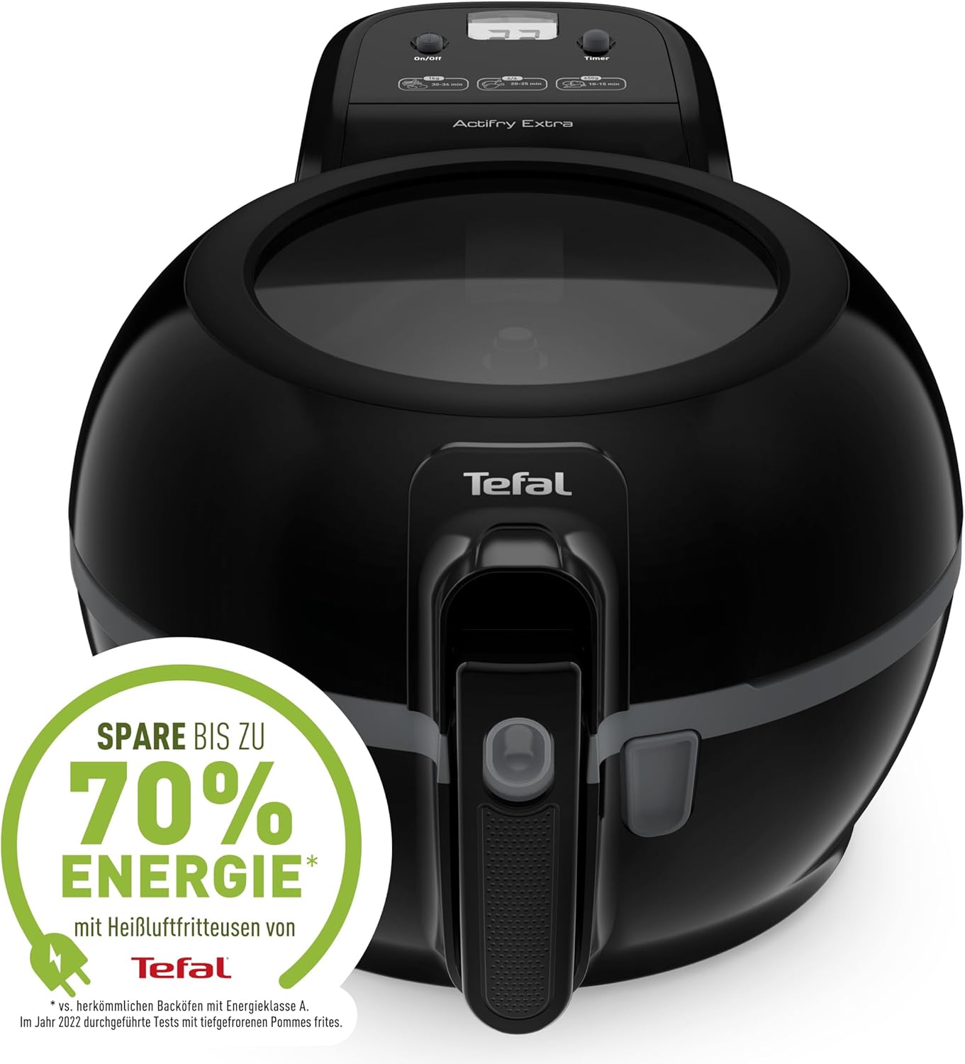 Tefal FZ7228 ActiFry Extra Heißluftfritteuse | AirFryer mit Rührarm, kein Schütteln | 1550 W | 1,2 kg für 6 Personen | High Speed Airflow | Timer | energiesparend | gesunde Friteuse ohne Öl | Schwarz | قیمت یورویی 133.9€