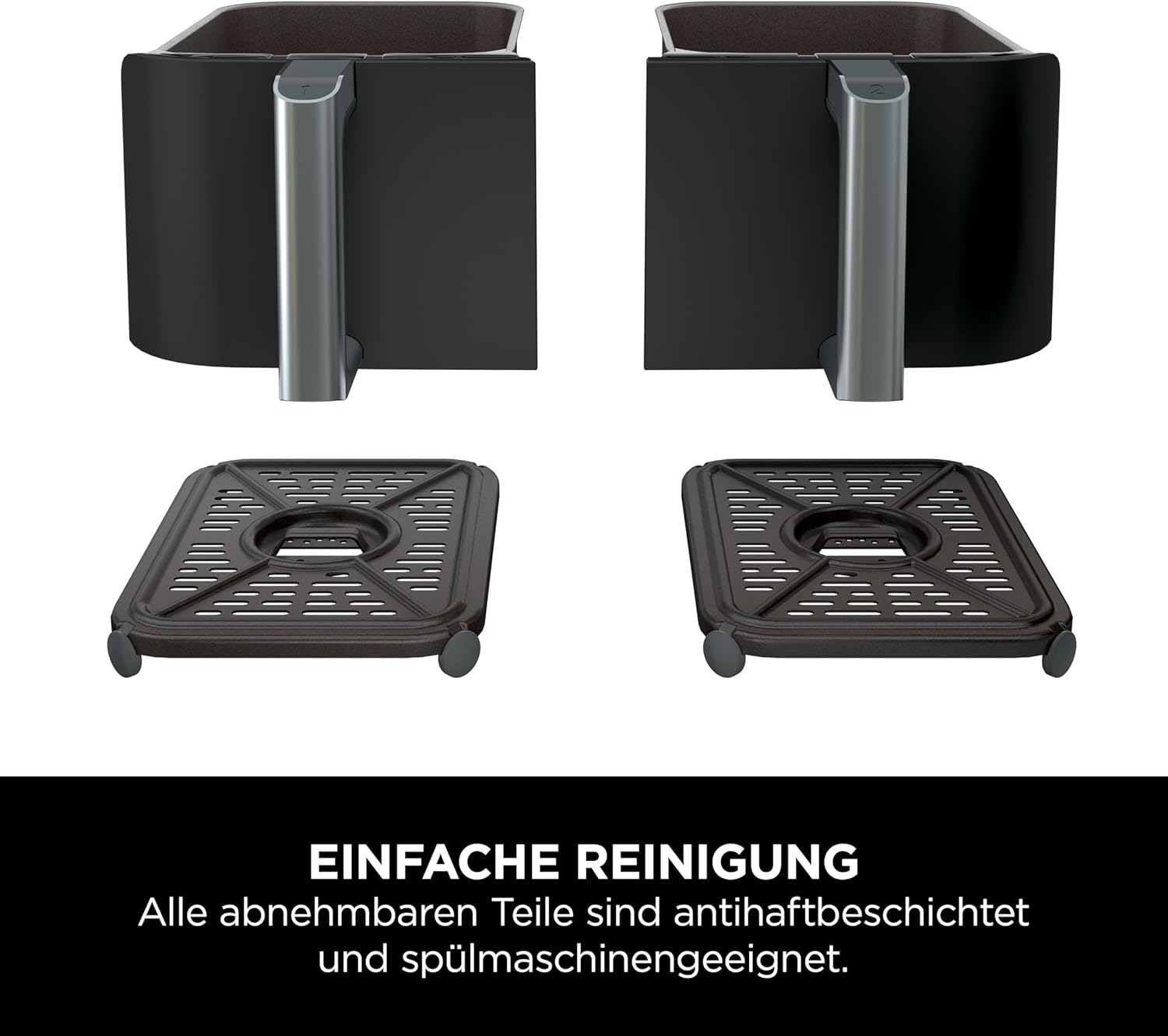 سرخ کن دو منطقه ای نینجا فودی، ۲ محفظه، ۷.۶ لیتر، ۴ در ۱، بدون روغن، سرخ کردن در هوای آزاد، حداکثر تردی، کباب کردن، گرم کردن مجدد، نچسب، سبد و سینی ترد کننده قابل شستشو در ماشین ظرفشویی، مشکی AF200EU 7.6 لیتر (۴ در ۱) مشکی