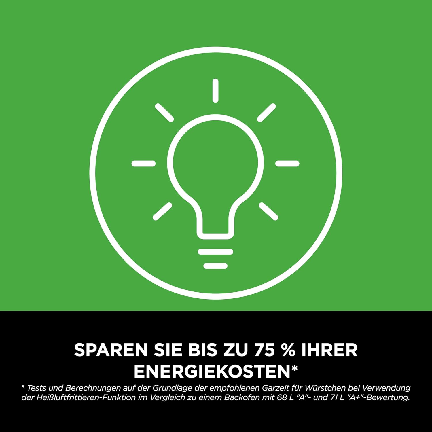STROMSPAREND: Sparen Sie bis zu 75 % Energiekosten des Backofens* (*** Die Tests und Berechnungen basieren auf der empfohlenen Garzeit für Würstchen bei Verwendung der Heißluft-Frittier-Funktion im Vergleich zu herkömmlichen Öfen) 2 UNABHÄNGIGE GARZONEN: Garen Sie 2 Gerichte auf 2 Arten gleichzeitig fertig mit dem Air Fryer. Mit unterschiedlichen Funktionen, Zeiten und Temperaturen in jedem Fach können Sie komplette Mahlzeiten in 1 Gerät zuzubereiten oder auf 2 Geschmäcker eingehen 4 ZUBEREITUNGSFUNKTIONEN: Max Crisp, Heißluftfrittieren, Braten, Aufwärmen. Von tiefgekühlt zu knusprig. Bis zu 75 % weniger Fett* beim Heißluftfrittieren (*Im Vergleich zu frittierten, handgeschnittenen Pommes frites) FAMILIENGRÖSSE: In jedes Fach passen bis zu 1 kg Pommes frites oder ein 1,6 kg schweres Hähnchen. Bis zu 75 % schnelleres Garen als bei Umluftbacköfen* (*Getestet mit Fischstäbchen und Würstchen, einschließlich Vorheizen) ENTHÄLT: 2x antihaftbeschichtete, spülmaschinenfeste 3,8-l-Fächer (Fassungsvermögen insgesamt 7,6 l) & Knusperbleche. Chefkoch-Rezeptführer. H 31,5 cm x W 38 cm x T 33 cm. Gewicht: 8,2 kg. Farbe: Schwarz ENTHÄLT: 2x antihaftbeschichtete, spülmaschinenfeste 3,8-l-Fächer (Fassungsvermögen insgesamt 7,6 l) & Knusperbleche. Chefkoch-Rezeptführer. H 31,5 cm x W 38 cm x T 33 cm. Gewicht: 8,2 kg. Farbe: Schwarz | قیمت یورویی : 126.04€