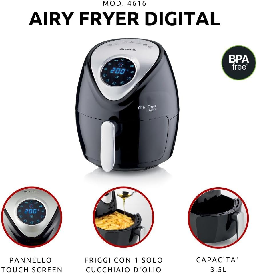 مدل دیجیتال 4616 از برند آریته، یک سرخ کن بدون روغن با ظرفیت ۳.۵ لیتر و طراحی جمعوجور است که امکان تهیه غذاهای متنوع را با کمترین میزان روغن فراهم میکند.