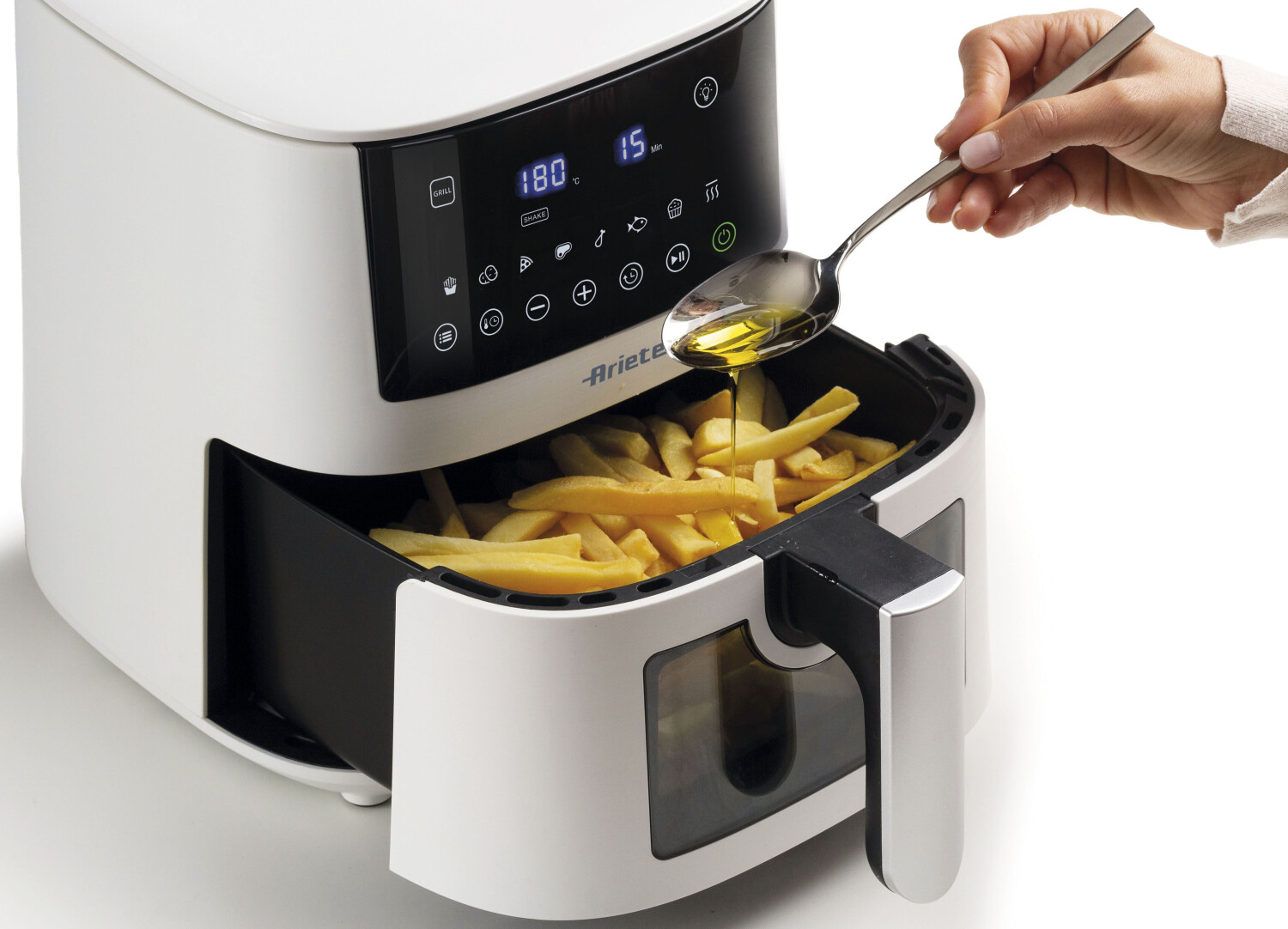 سرخ کن Ariete مدل 4633/03 با رنگ سفید و طراحی مینیمال، برای خانوادههایی طراحی شده که به تغذیه سالم و کاربری آسان اهمیت میدهند.