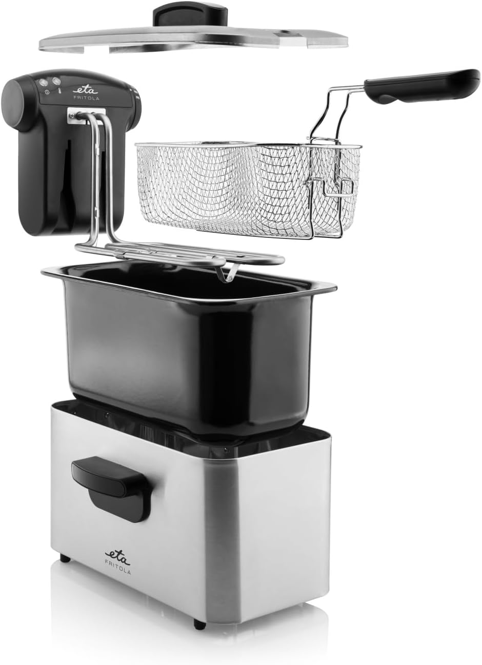 ETA Fritola Fritteuse I Edelstahlfritteuse I 2000 W I Fassungsvermögen 3 l I Temperaturregelung: 150 bis 190 °C I EASY CLEAN-Funktion I Sicherheits-Thermoverschluss | قیمت یورویی 79.99€