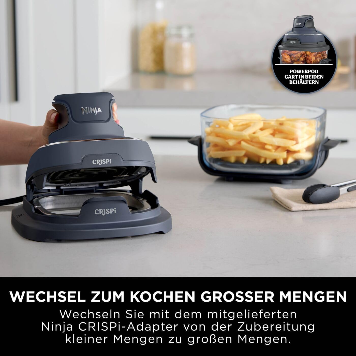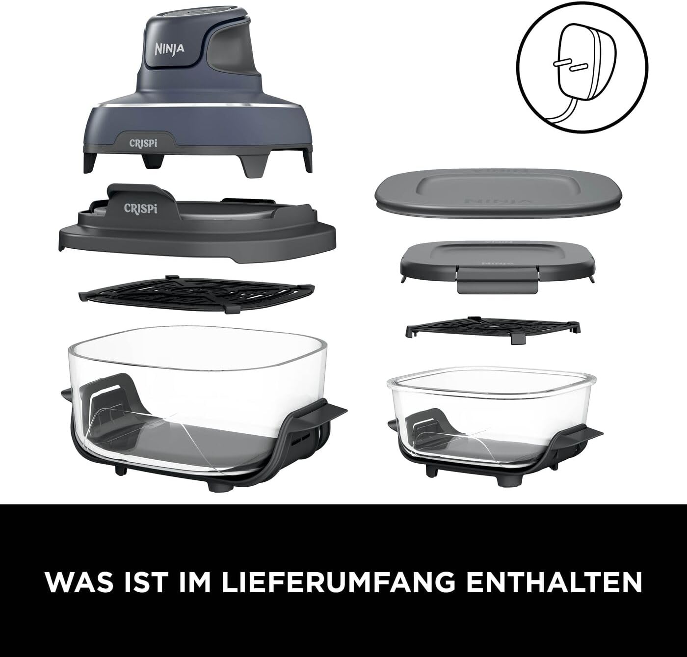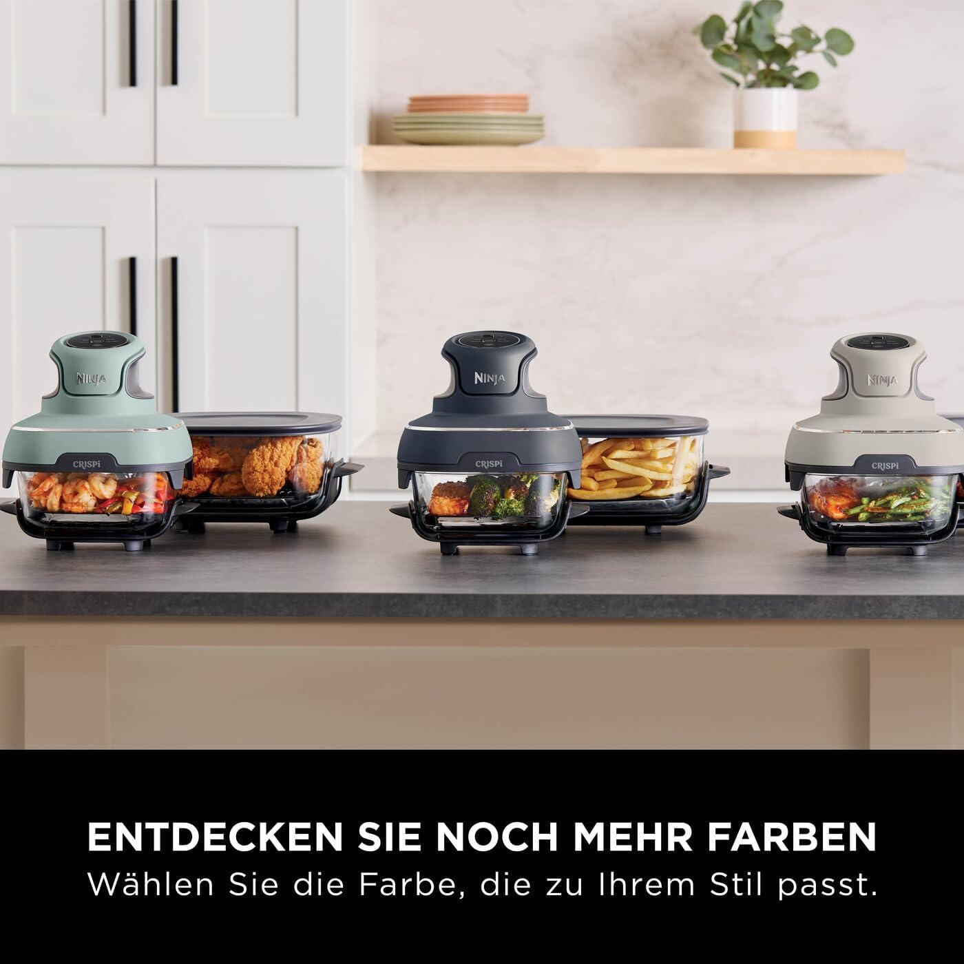Ninja CRISPi tragbare Airfryer Heißluftfritteuse, 3,8 l, 4-in-1: Heißluftfrittieren, Braten, Warmhalten, Recrisp, kompakt, 6 Portionen, 2x herausnehmbare Glasbehälter & Deckel, 1.700 W, Grau FN101EUGY | قیمت یورویی 179.99€