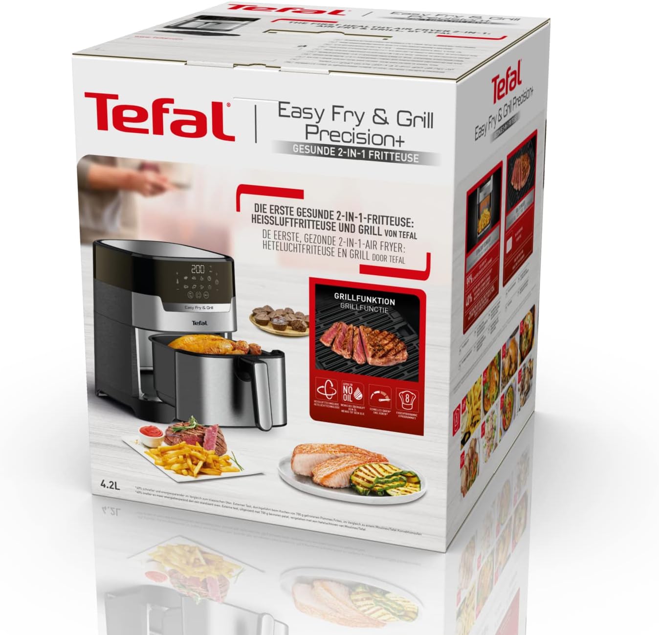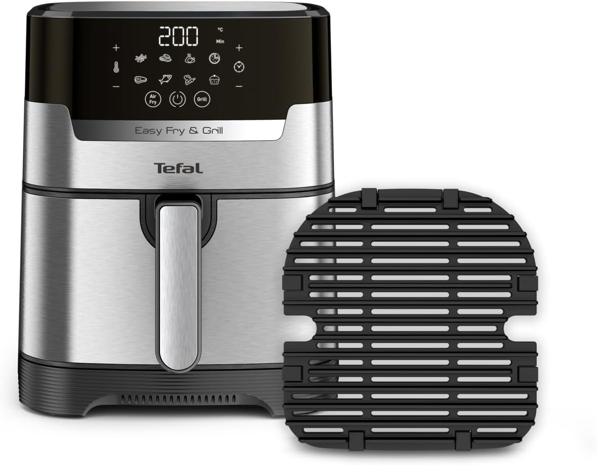 Tefal EY505D Easy Fry & Grill Heißluftfritteuse | 2-in-1 Technologie (Air Fryer und Grill) | Digitales Display | 4,2 Liter für 6 Portionen | 8 Kochprogramme | energiesparend | ohne Öl | Edelstahl, XL | قیمت یورویی 117.16€