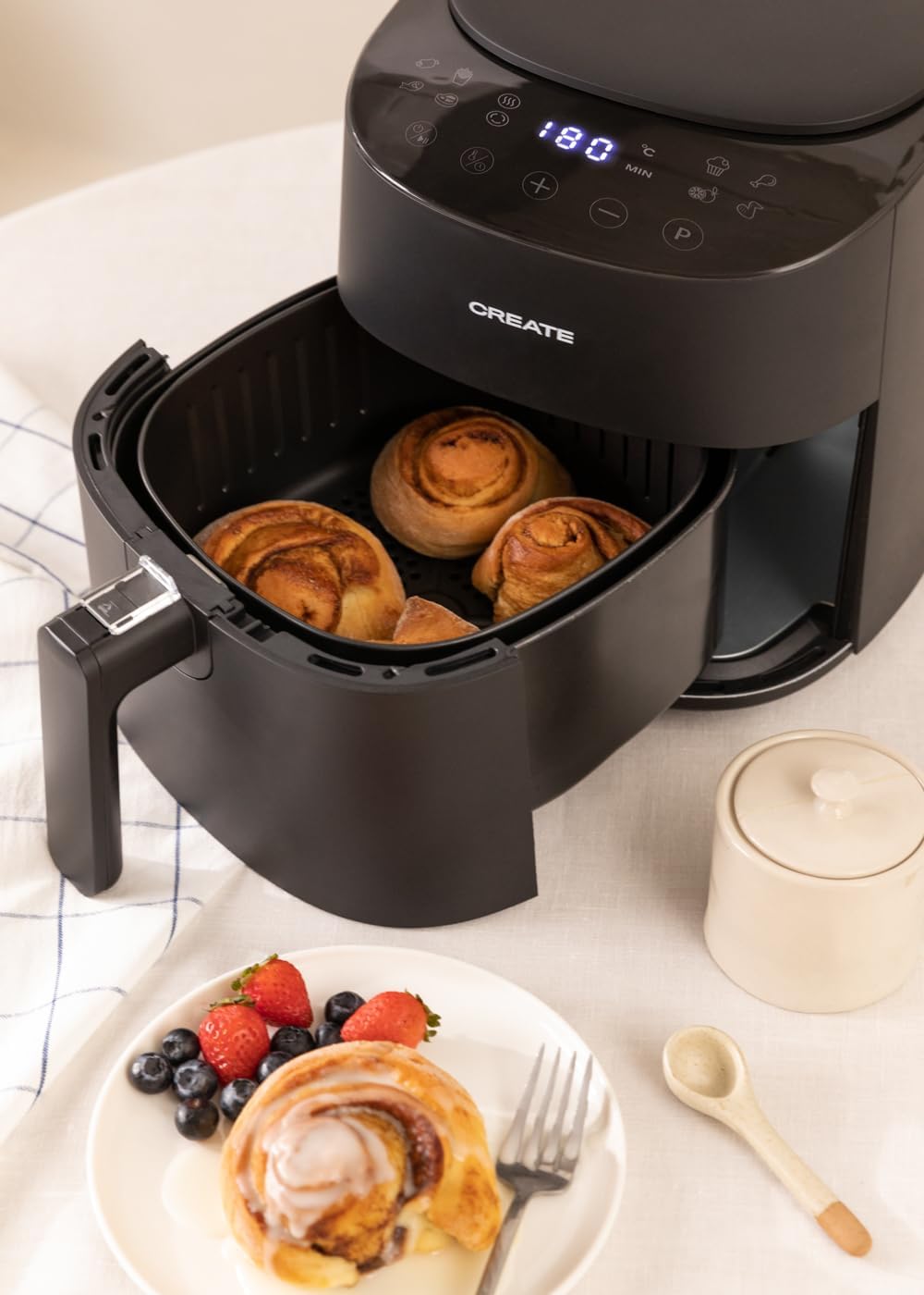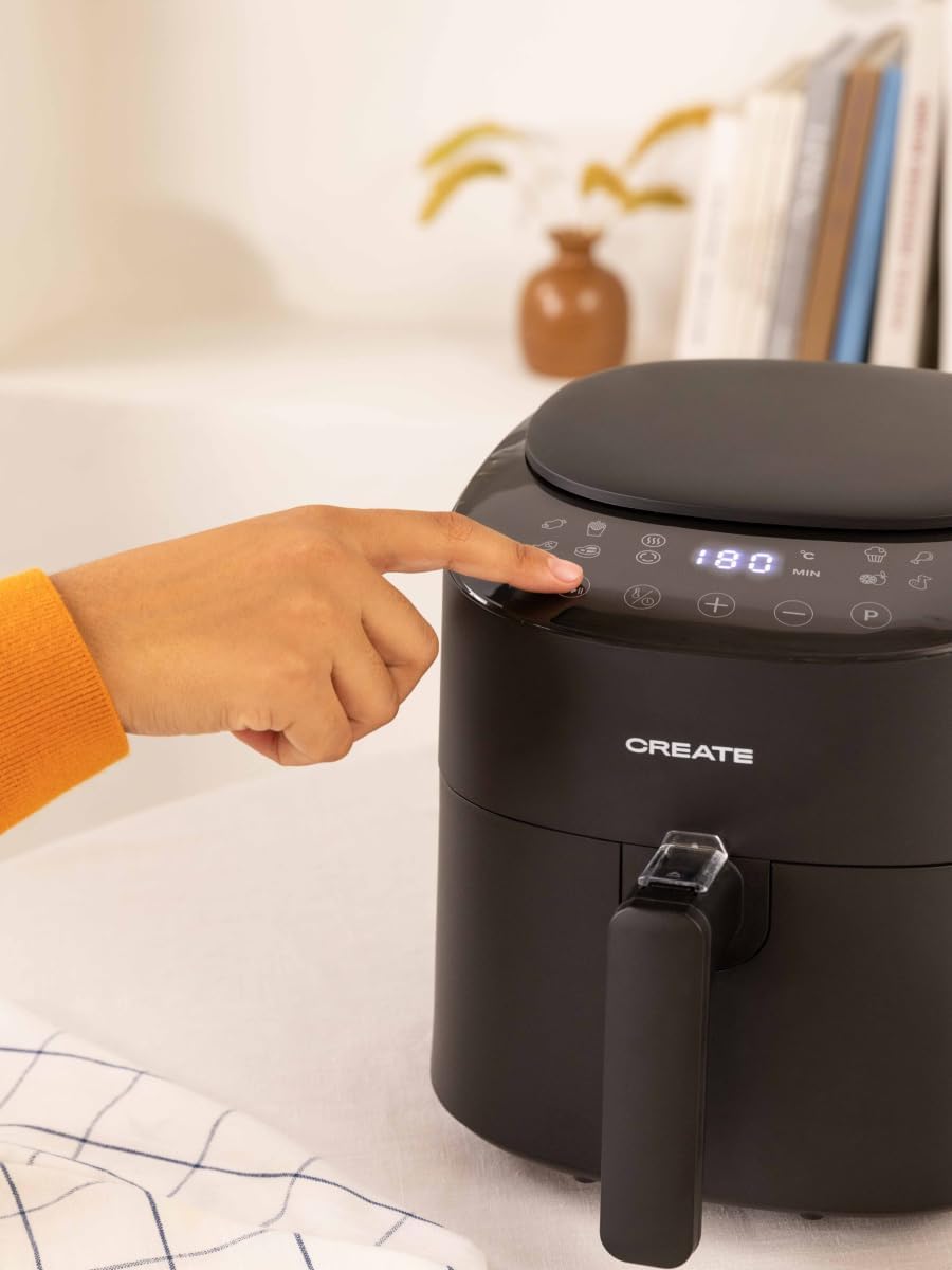 سرخ کن هوای گرم CREATE/FRYER AIR PRO COMPACT 3.5 لیتری مشکی / 8 برنامه، صفحه نمایش، کاربردی، تمیز کردن آسان، سیستم گردش هوای 360 درجه، 1300 وات، 3.5 لیتری مشکی کامپکت