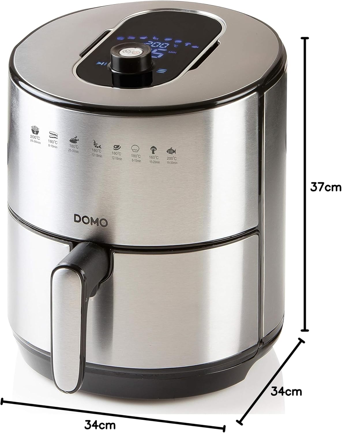 DOMO DO530FR Heißluft-Fritteuse - 4 L - Edelstahl - 1500 W LCD-Anzeige 4 Liter Silber | قیمت یورویی 70.94€