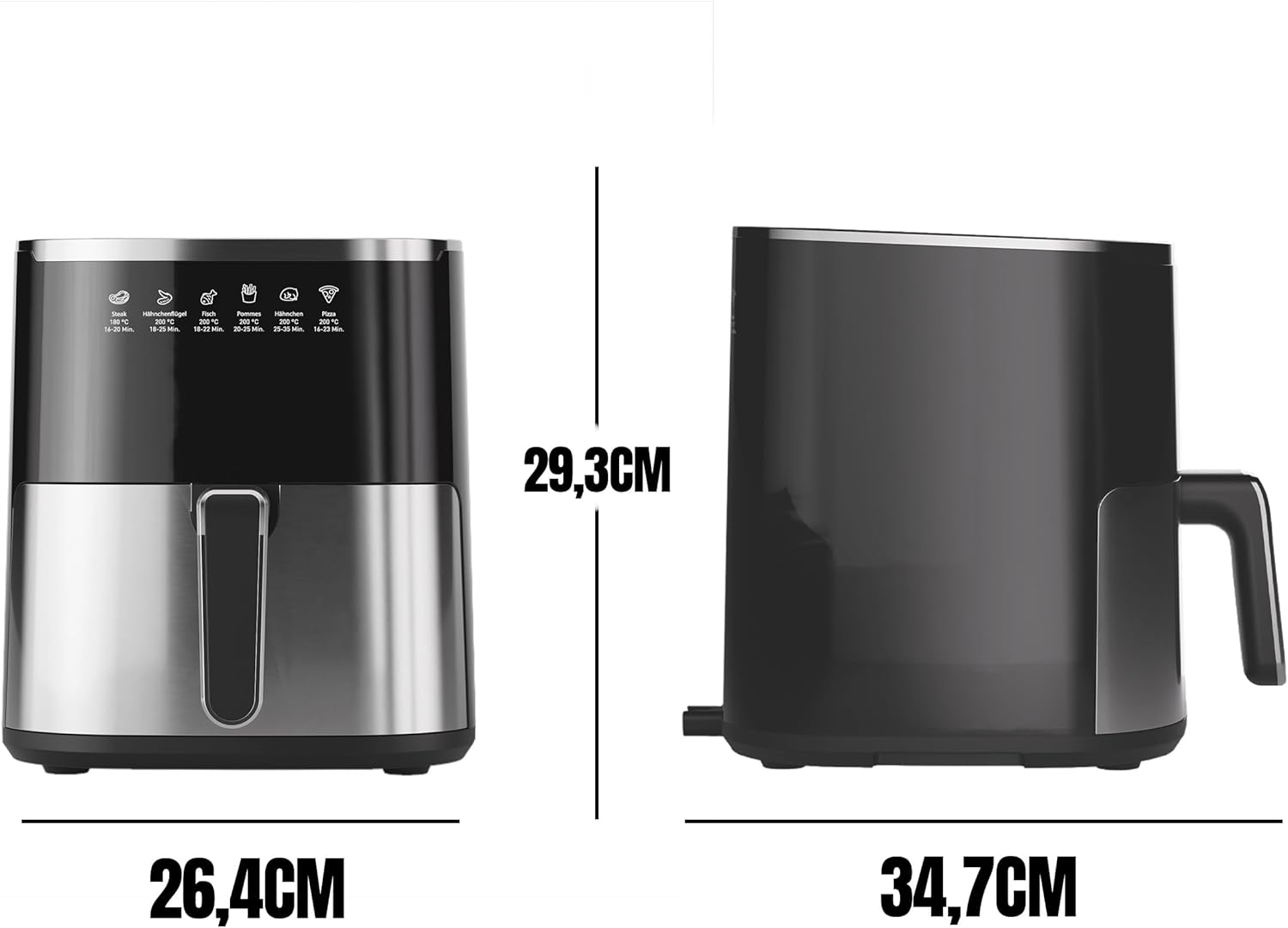 💪قدرتمند و انعطاف‌پذیر: این سرخ‌کن با ۱۴۵۰ وات قدرت، دمای بالا و توزیع یکنواخت گرما را در مدت زمان کوتاهی ارائه می‌دهد. ایده‌آل برای زمانی که در زندگی پرمشغله روزمره به چیزی سریع نیاز دارید! 👍 تک نفره و همه کاره: با ظرفیت ۵ لیتر، می‌توانید به راحتی سیب‌زمینی سرخ کرده، سبزیجات یا وعده‌های غذایی کامل را برای خانواده و دوستان آماده کنید. ۱۲ برنامه خودکار از پیش تعریف شده، دمای مناسب و زمان پخت را برای غذاهای رایج تضمین می‌کنند - به سادگی انتخاب کنید، شروع کنید و لذت ببرید. ✅هوشمند و راحت: صفحه نمایش LED با پنل کنترل لمسی-حسگردار، عملکرد را واضح و ساده می‌کند. دما به صورت جداگانه بین ۸۰ تا ۲۰۰ درجه سانتیگراد قابل تنظیم است و همچنین یک عملکرد تایمر وجود دارد - ایده‌آل برای دستیابی به نتایج ترد دقیقاً مطابق میل، بدون نیاز به بررسی مداوم غذا. 🥦کاربردی و سالم: هوای گرم به جای چربی - میان وعده‌های خوشمزه و ترد تقریباً بدون روغن. سبد سرخ کردنی نچسب و قابل شستشو در ماشین ظرفشویی، تمیز کردن را بسیار آسان‌تر می‌کند و به این معنی است که لازم نیست سبد را با دست و به طور خسته‌کننده‌ای تمیز کنید. 🎁لذت هدیه دادن: عزیزانتان را با محصولات ما غافلگیر کنید. ما اینجا هستیم تا در هر مرحله از مسیر به شما کمک و مشاوره دهیم.