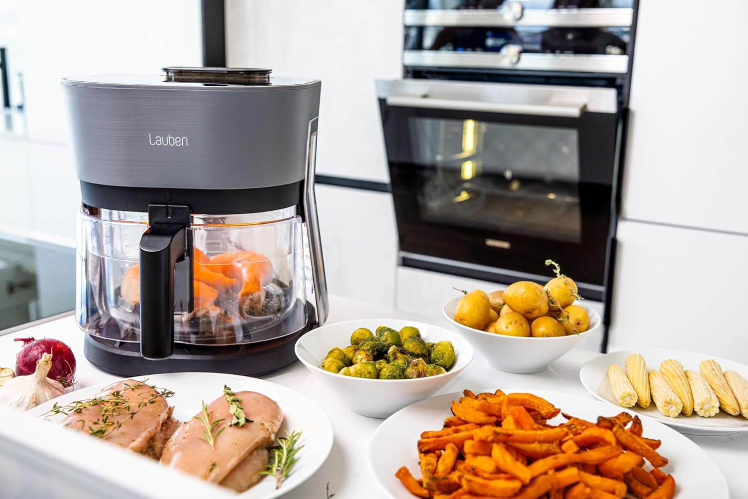 Lauben Glass&Steam Heißluftfritteuse 4500BG Air Fryer mit Glasfrittierkorb, Dampffunktion, 8 Programme, manuelle Zeit- und Temperatureinstellung, spülmaschinenfester Korb, Behältervolumen 4,5l | قیمت یورویی 134.99€