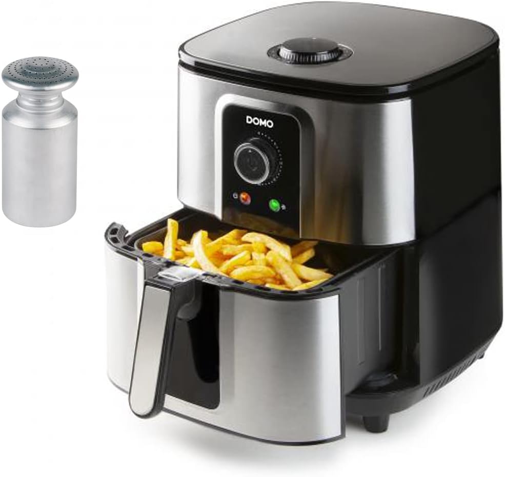 Heißluft-Fritteuse: bis zu 80% weniger Fett verglichen mit herkömmlichen Fritteusen Schnelle Luftzirkulation für zügiges, energiesparendes Frittieren Zur Zubereitung von Pommes Frittes, Kroketten und Snacks sowie Geflügel, Fleisch, Quiche, Kuchen u.v.m. Fassungsvermögen: 5,5 Liter - 1,5 kg Regulierbare Temperatur: 80°C-200˚C, Timer bis 30 Minuten Cool-Touch-Gehäuse und Griff & Überhitzungsschutz - Behälter und Frittierkorb aus Teflon Inklusive großem Salzstreuer im Edelstahl Design | قیمت یورویی : 125.99€