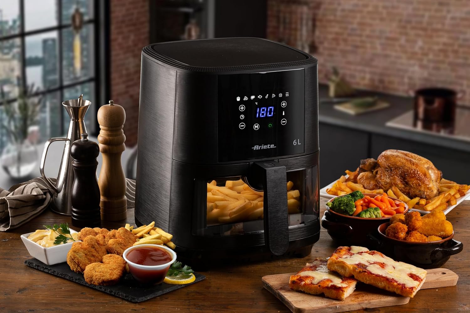 قابل استفاده برای سرخ کردن سیبزمینی، مرغ، گوشت، سبزیجات، و تهیه غذاهای یخزده. مجهز به تایمر قابل تنظیم، سبد قابل شستوشو و سیستم گردش هوای داغ برای پخت یکنواخت.