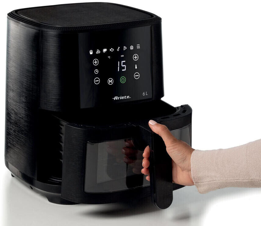 مدل 4626/00 از برند آریته، یک هوا پز با ظرفیت مناسب ۶ لیتری و توان ۱۳۰۰ وات است که با گردش هوای داغ، امکان پخت بدون روغن یا با حداقل روغن را فراهم میکند. دمای قابل تنظیم تا ۲۰۰ درجه و تایمر داخلی، کنترل کامل بر فرآیند پخت را به کاربر میدهد. طراحی ساده و مصرف بهینه انرژی این دستگاه را به انتخابی اقتصادی برای خانوادههای کوچک تا متوسط تبدیل کرده است.