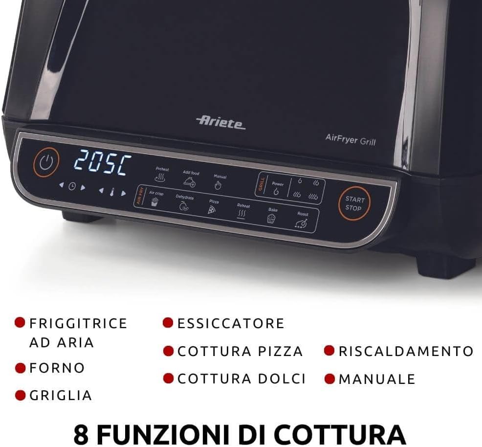 سرخ کن و گریل آریته مدل 4635 با توان بالا و ۸ برنامه پخت، برای پخت سالم، سریع و بدون روغن انواع غذا طراحی شده است.
