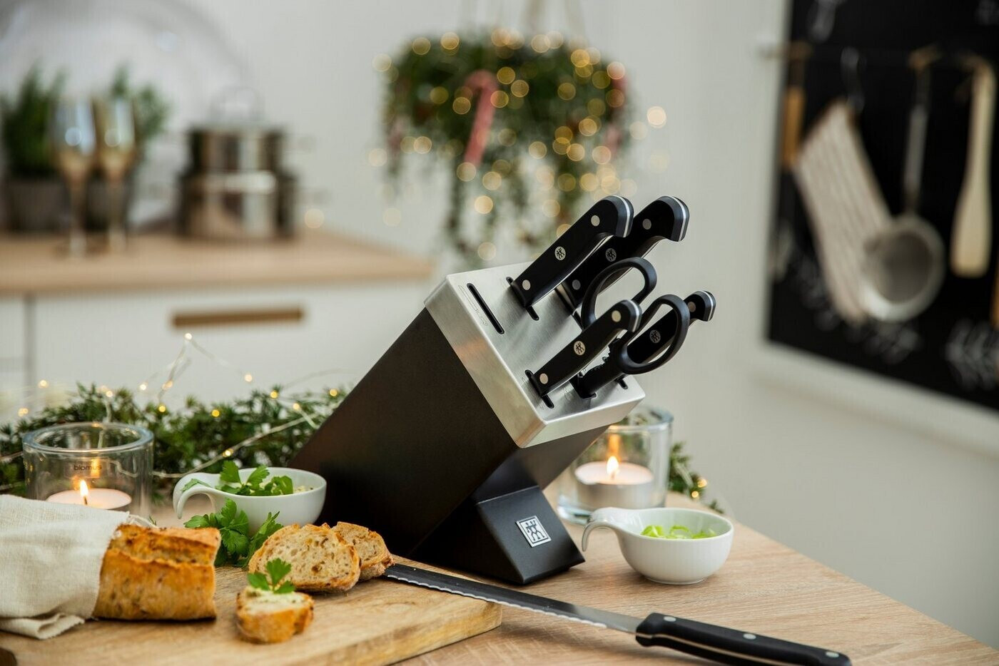 ست چاقوی zwilling سری Gourmet با بلوک چوبی مجهز به سیستم تیزکن خودکار (Self-Sharpening) انتخابی مناسب برای کسانی است که میخواهند تیغههای چاقو همیشه تیز و آماده استفاده باشند. این مجموعه شامل 7 پارچه چاقوی ضروری آشپزخانه است که در بلوک چوبی مقاوم و زیبا به رنگ خاکستری (طوسی) نگهداری میشوند.