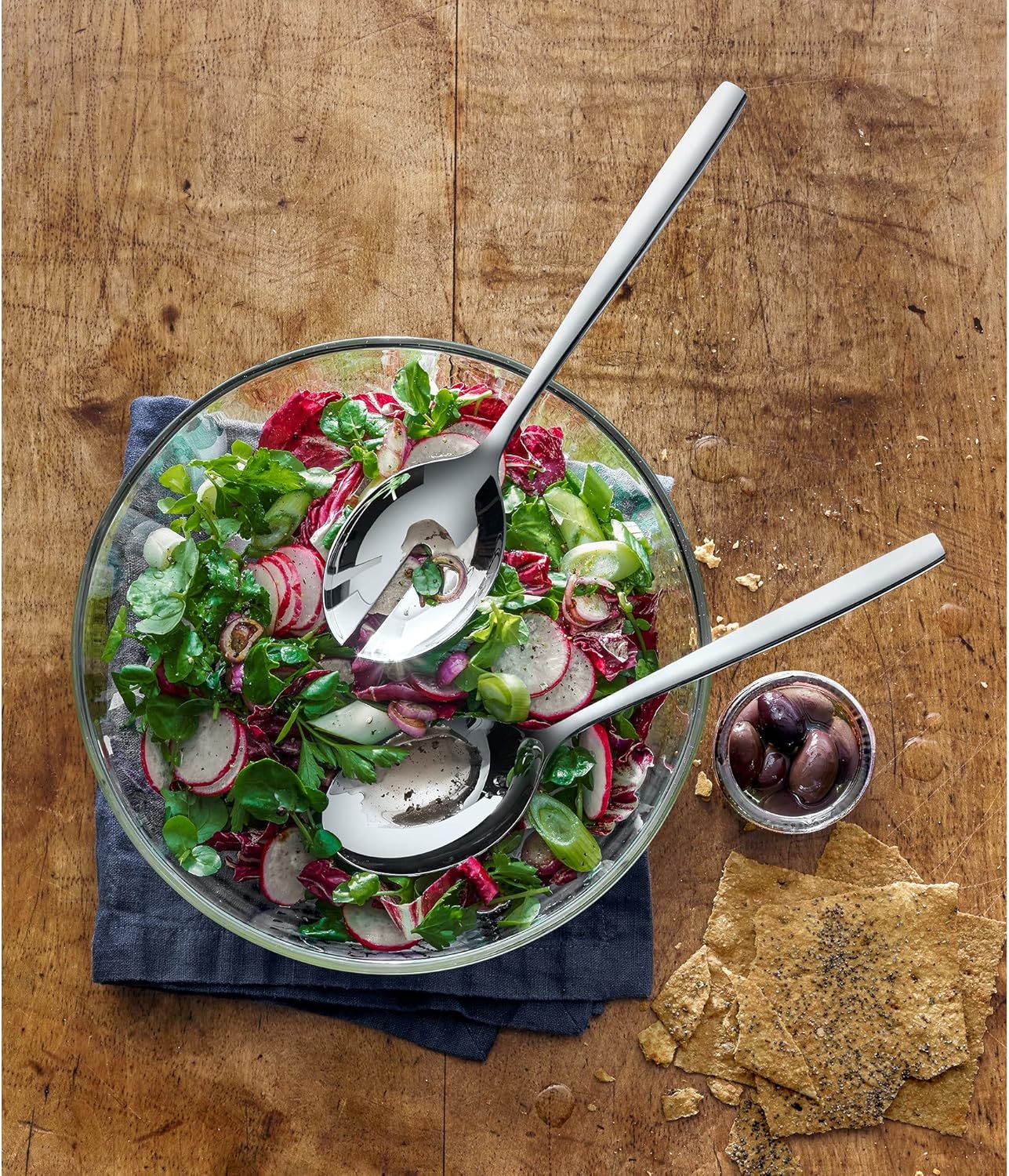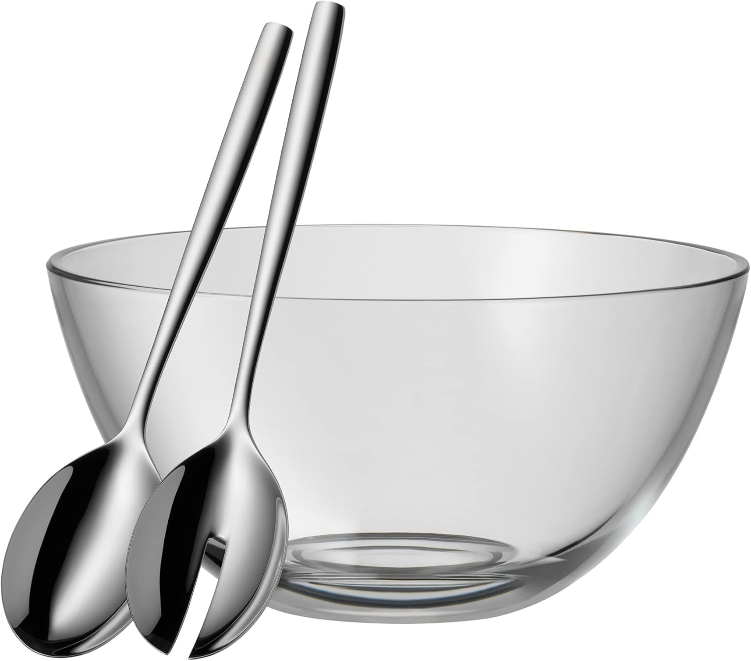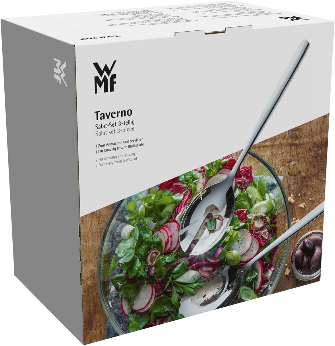 WMF Taverno Salatschüssel Set 3-teilig, Salatbesteck Edelstahl 25 cm mit Salatschale, runde Schale 23,5 cm, Salatschüssel Glas, spülmaschinengeeignet Salatschüssel 23,5 cm | قیمت یورویی 30.18€