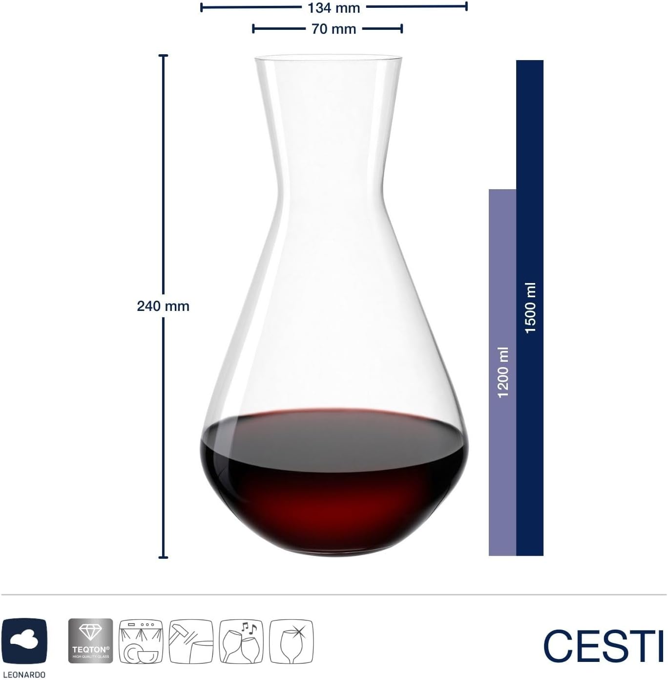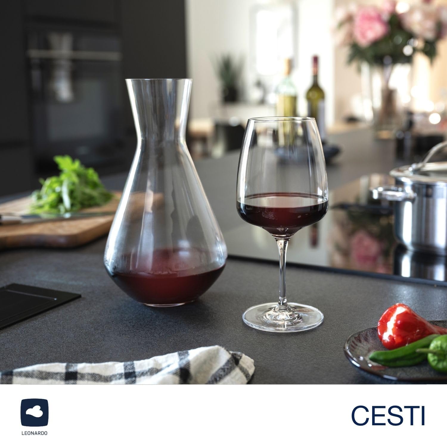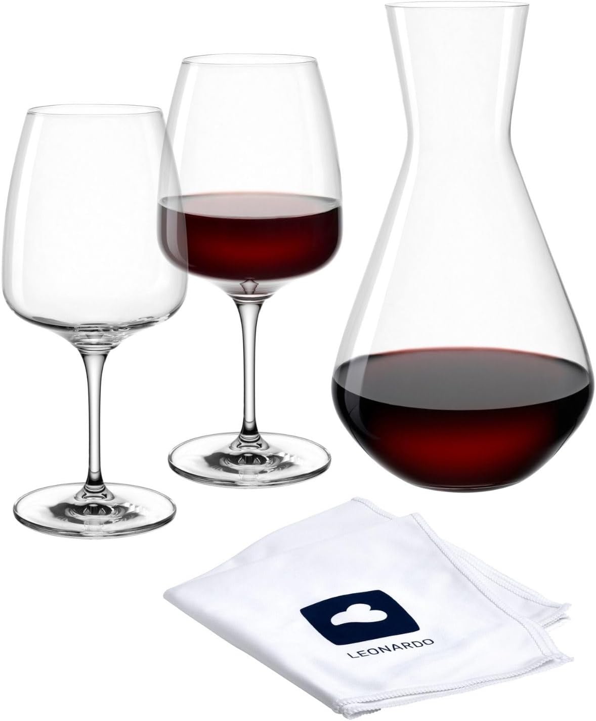 LEONARDO HOME Weinset CESTI (3er Set) inkl. Poliertuch • Spülmaschinenfestes Wein-Set • Stoßfestes Rotwein-Set • Weingläser mit niedrigem Stil (500 ml) • Hochwertige Glas-Karaffe (1500 ml) • 040974 3tlg. Weinset + Poliertuch | قیمت یورویی 39.9€