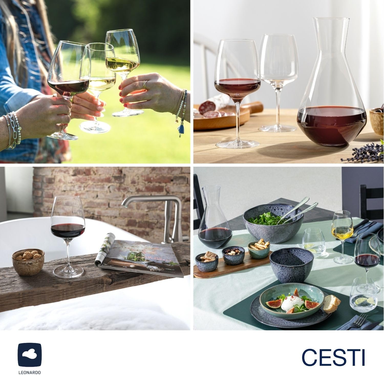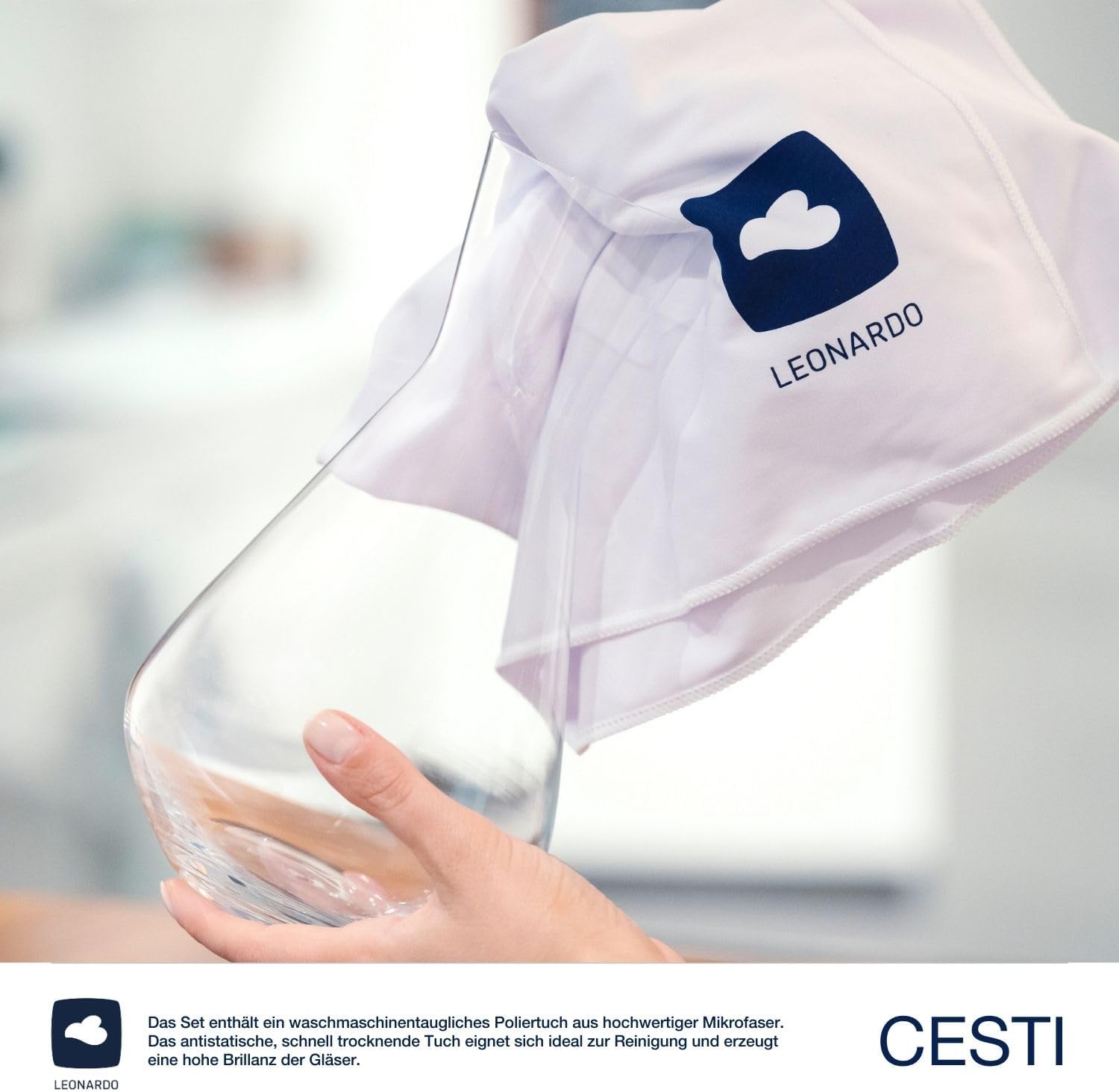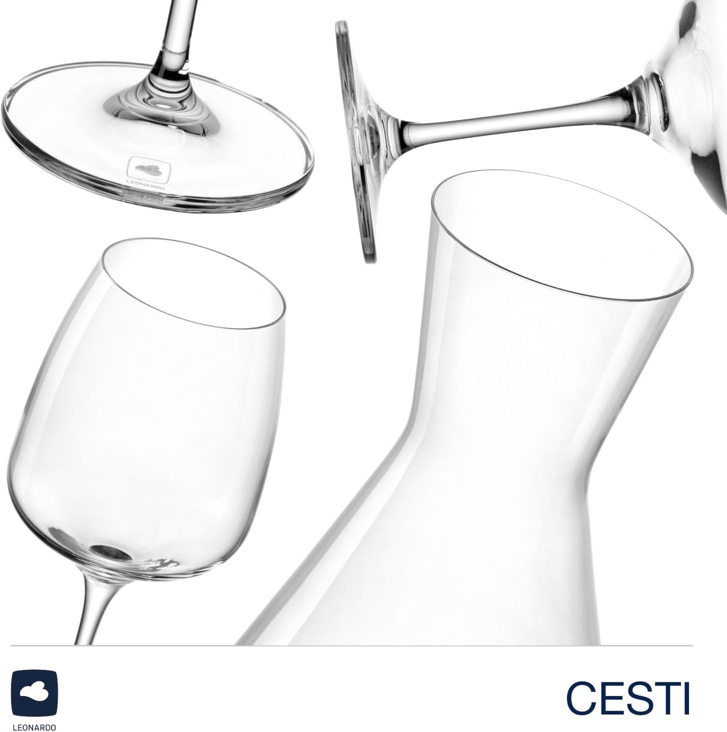 LEONARDO HOME Weinset CESTI (3er Set) inkl. Poliertuch • Spülmaschinenfestes Wein-Set • Stoßfestes Rotwein-Set • Weingläser mit niedrigem Stil (500 ml) • Hochwertige Glas-Karaffe (1500 ml) • 040974 3tlg. Weinset + Poliertuch | قیمت یورویی 39.9€