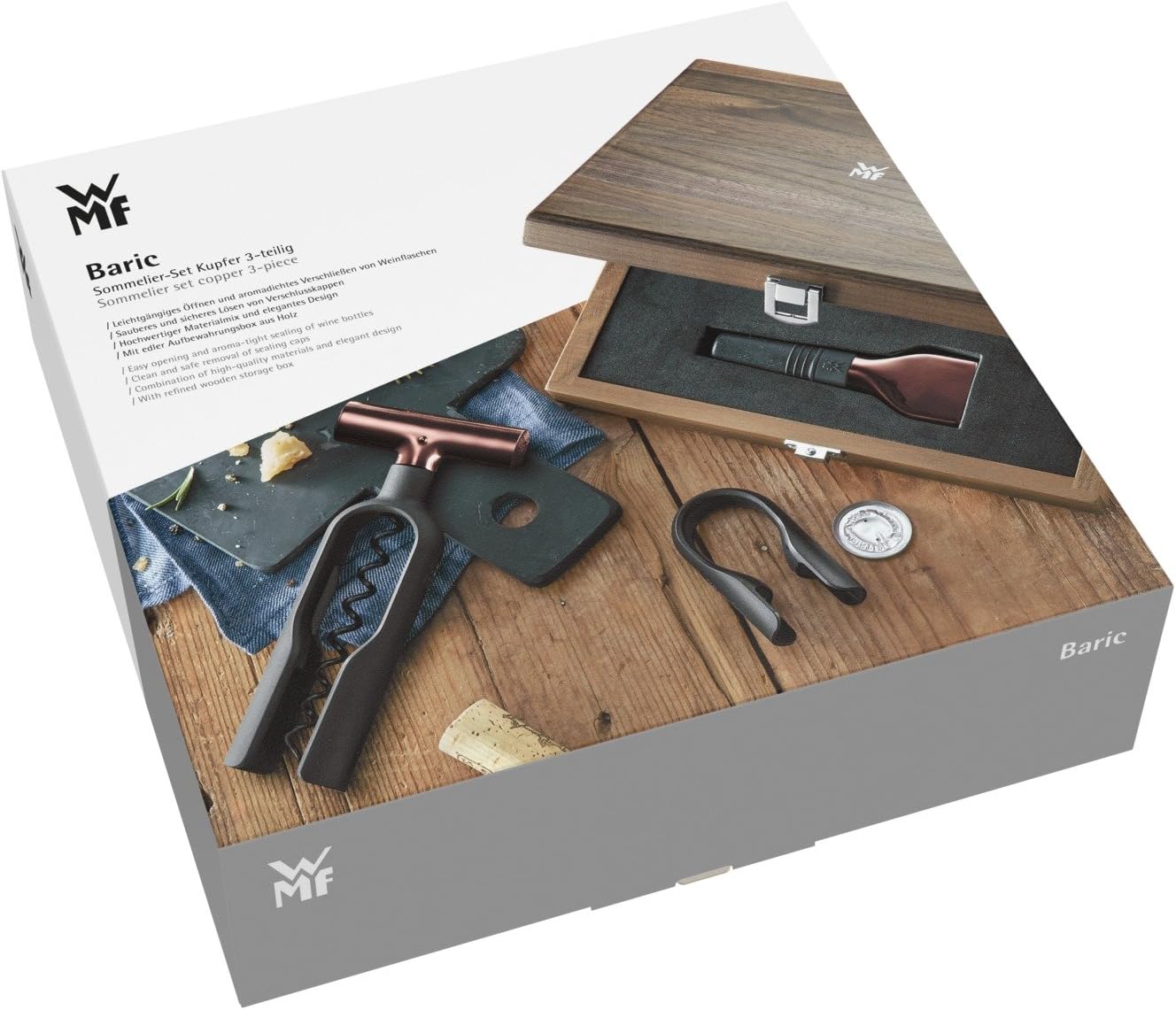 WMF Baric Sommelier Weinset 3-teilig, Korkenzieher, Folienschneider, Flaschenverschluss, in Walnussholzbox, kupfer 3-teilig Kupfer | قیمت یورویی 64.99€
