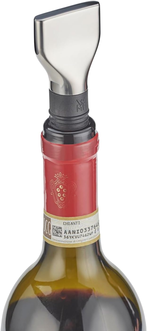 WMF Baric Wein Sommelier Set 3-teilig, Korkenzieher Set, Wein Zubehör, Folienschneider, Flaschenverschluss, in Walnussholzbox, schwarz Single لینک آمازون : https://www.amazon.de/dp/B07DCW41Y7?th=1&psc=1 محتویات: ۱ عدد دربازکن (۷ × ۱۶ سانتیمتر)، ۱ عدد برشدهنده فویل (ارتفاع ۷ سانتیمتر، قطر ۴ سانتیمتر)، ۱ عدد درپوش بطری (۹.۵ × ۳.۵ سانتیمتر)، ۱ عدد جعبه چوبی گردو (۲۰ × ۱۹ × ۴.۵ سانتیمتر) - شماره کالا: ۰۶۶۲۸۵۶۰۴۰ جنس: پلاستیک، فولاد ضد زنگ Cromargan® 18/10، سیلیکون - تمیز کردن آسان ست کامل شرابخوری با لوازم جانبی حرفهای برای دوستداران و متخصصان شراب در یک جعبهی چوبی گردوی زیبا. دربازکن - برای باز کردن حرفهای بطریهای شراب؛ برشدهنده فویل - به راحتی و تمیزی درب بطریها را جدا میکند. درپوش بطری - آببندی بطریهای باز شده از نظر هوا و عطر (برای بطریهای شامپاین و شراب گازدار مناسب نیست)