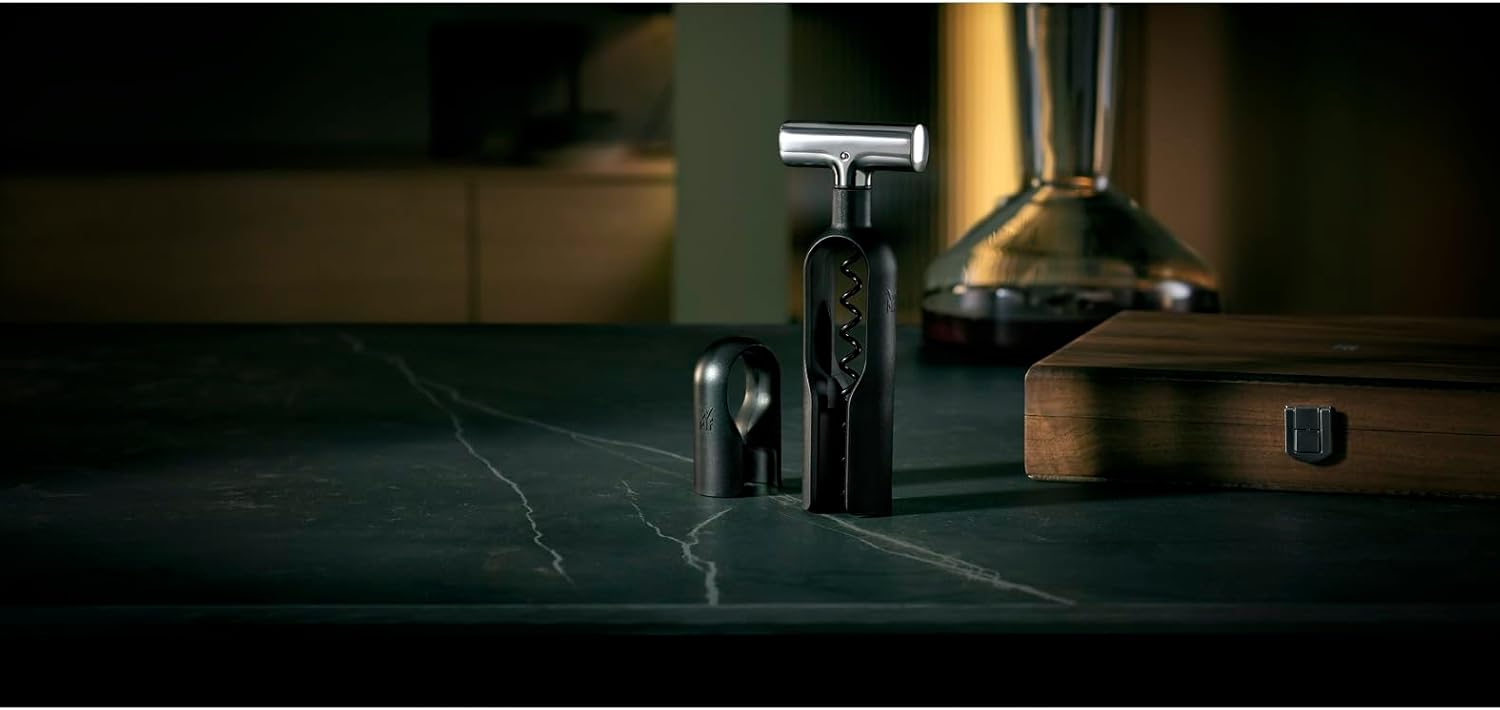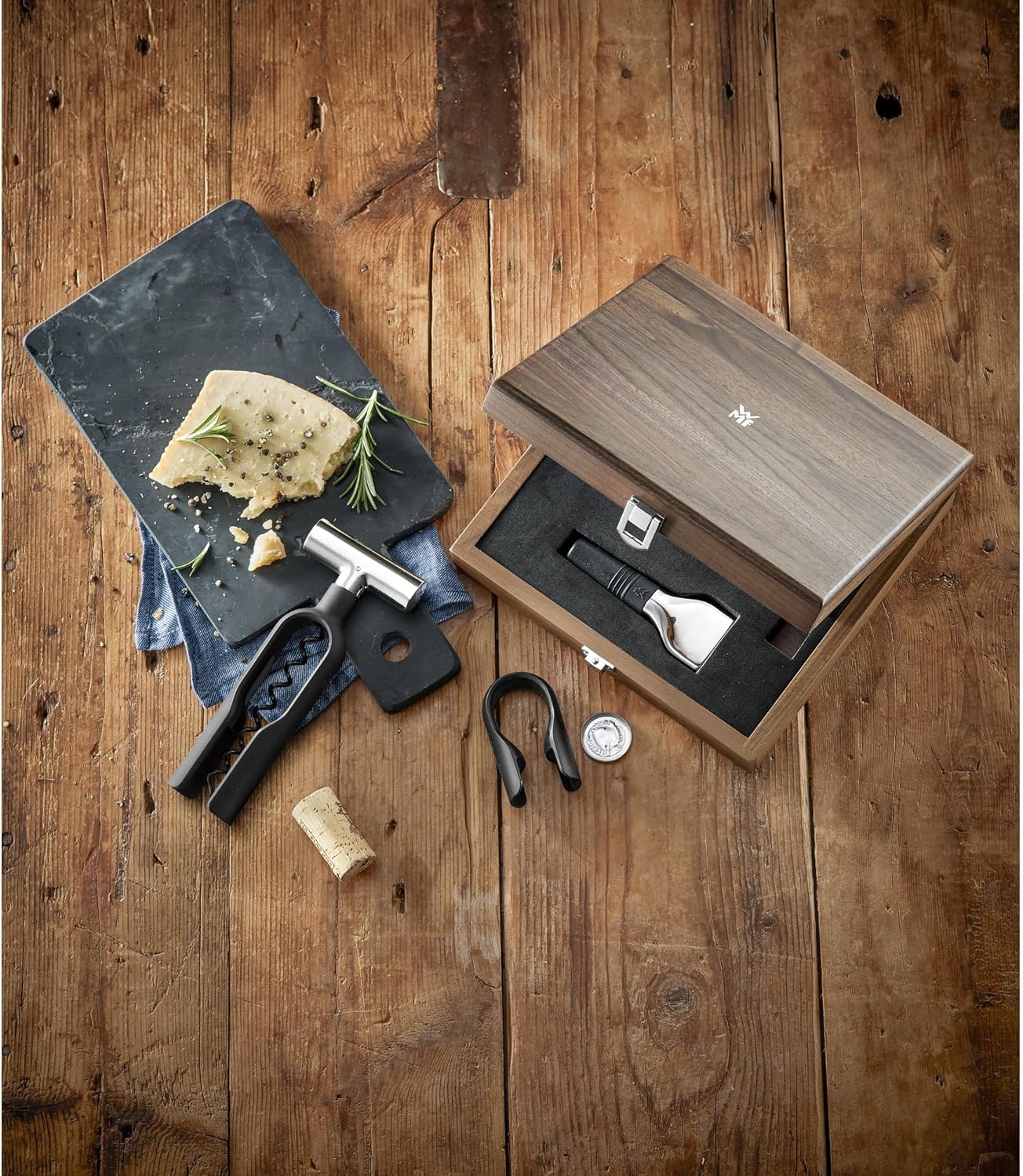 سرویس شراب WMF Baric Wine Sommelier، 3 تکه، ست دربازکن، لوازم جانبی شراب، برش فویل، درب بطری، در جعبه چوبی گردو، مشکی (تک نفره)