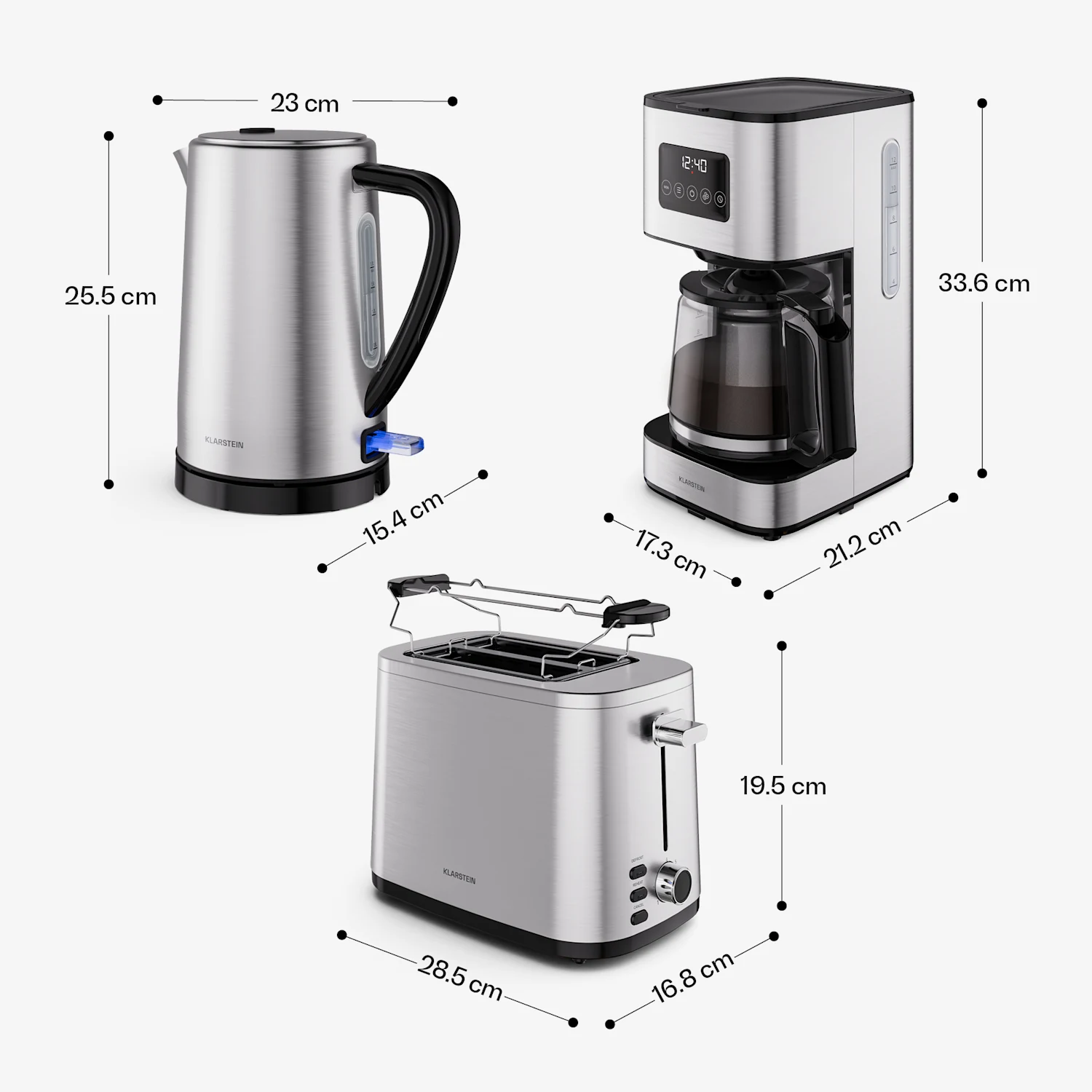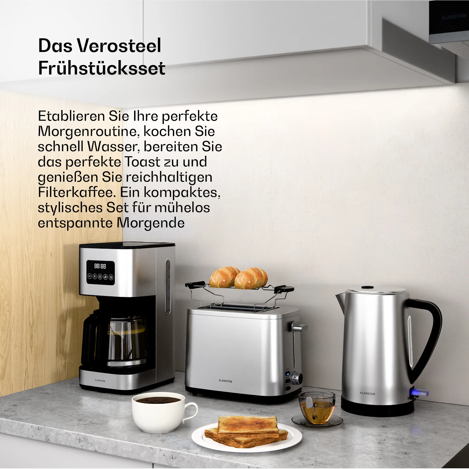 سرویس صبحانه Klarstein Verosteel با استیل ضد زنگ با کیفیت بالا و عناصر مشکی براق ظریف، جلوهای خیرهکننده دارد. این سرویس به طور یکپارچه با فضاهای مدرن ترکیب میشود. این سرویس صبحانه بخشی از سری طراحی Verosteel است و ظرافت و هندسه مدرن را به نمایش میگذارد و آن را به یک افزودنی طبیعی برای هر آشپزخانه مجهز تبدیل میکند. این مجموعه کامل شامل یک توستر ۲ تکهای با قدرت ۸۰۰ وات، یک کتری با ظرفیت ۱.۷ لیتر و یک قهوهساز فیلتری است که در هر چرخه دم کردن، ۱۲ فنجان قهوه آماده میکند. این توستر همچنین دارای ۷ سطح مختلف قهوهپزی و یک گرمکن نان برای گرم کردن رولها و کروسانها است. کتری با قدرتی تا ۲۲۰۰ وات، مجهز به یک فیلتر رسوب آهک داخلی است. قهوهساز فیلتری با عملکرد گرم نگهداشتن ۴۰ دقیقهای، آمادهسازی صبحانه راحت را تکمیل میکند. آیا میخواهید یک آشپزخانه منسجم با ظرافت ساده ایجاد کنید؟ اکنون تمام مجموعه لوازم Verosteel ما را کشف کنید و یک تجربه آشپزخانه زیبا و هماهنگ ایجاد کنید!
