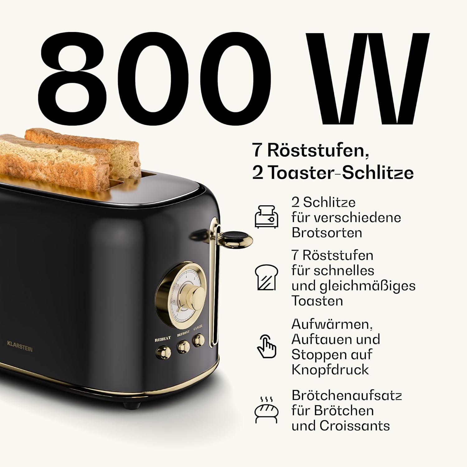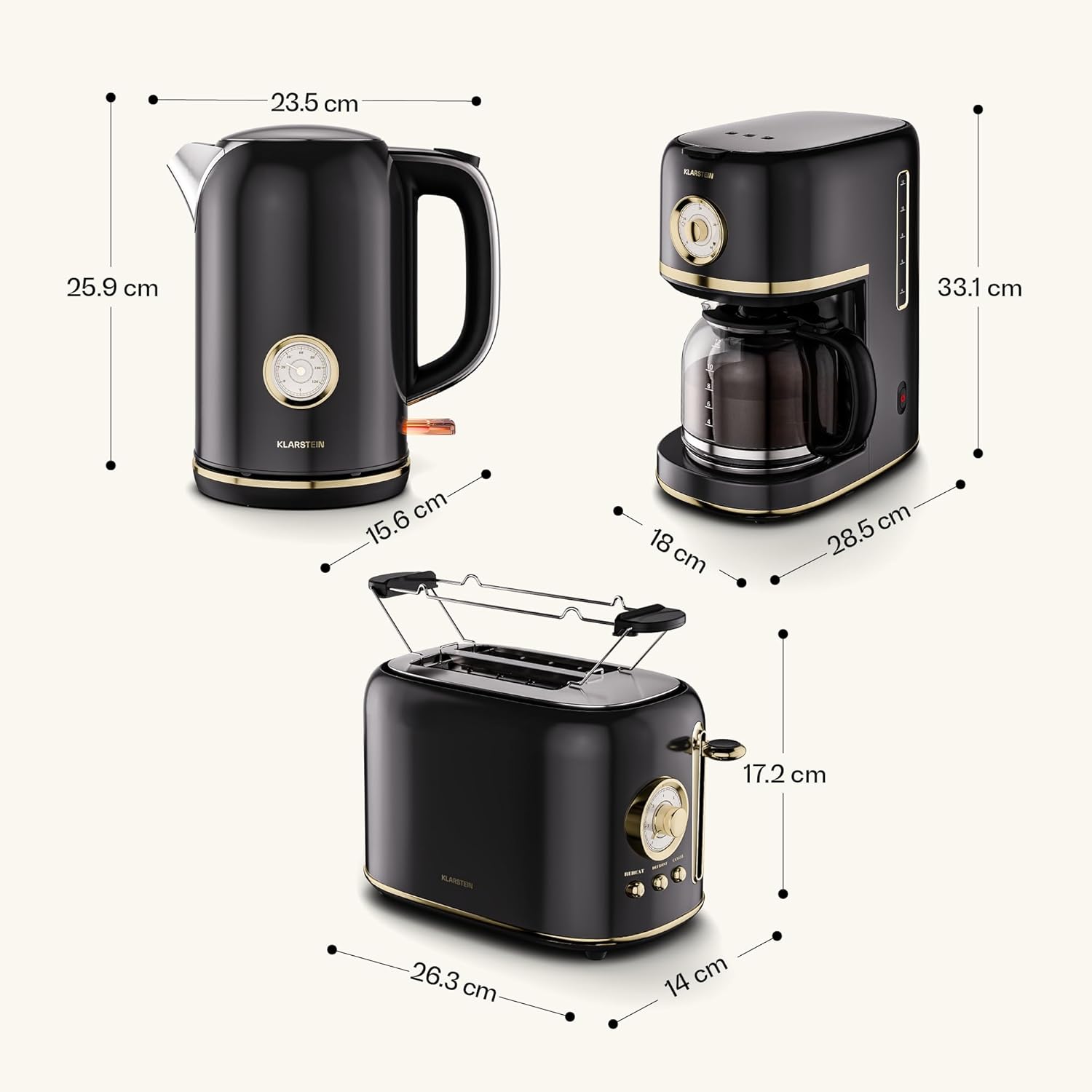 klarstein Victoria Frühstücksset 800W Toaster, 1,7L 2200W Wasserkocher Schwarz