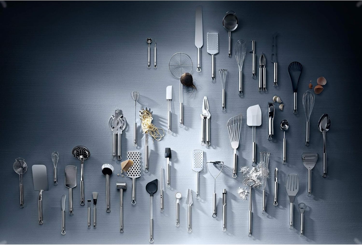 Inhalt: 1x Utensilienständer (Höhe 42,5 x 14,5 cm), 1x Schöpflöffel 30 cm, 1x Schaumlöffel 30 cm, 1x Wokwender 36,2 cm, 1x Wender 32,2 cm, 1x Schneebesen 25 cm, 1x Gemüseschäler 19 cm - Artikelnummer: 1876709990 Material: Cromargan Edelstahl 18/10, teilmattiert. Rostfrei, spülmaschinengeeignet, formstabil, hygienisch, säurefest und unverwüstlich. Hochwertiges Silikon. Dank des Aufsteller können die Küchenhelfer platzsparend aufbewahrt werden und sind immer schnell griffbereit Die Funktionsteile sind fest im Griff einzementiert. Mit praktischer Öse zur Aufbewahrung an einer Hängeleiste mit Haken Design: WMF Atelier | قیمت یورویی : 75.44€