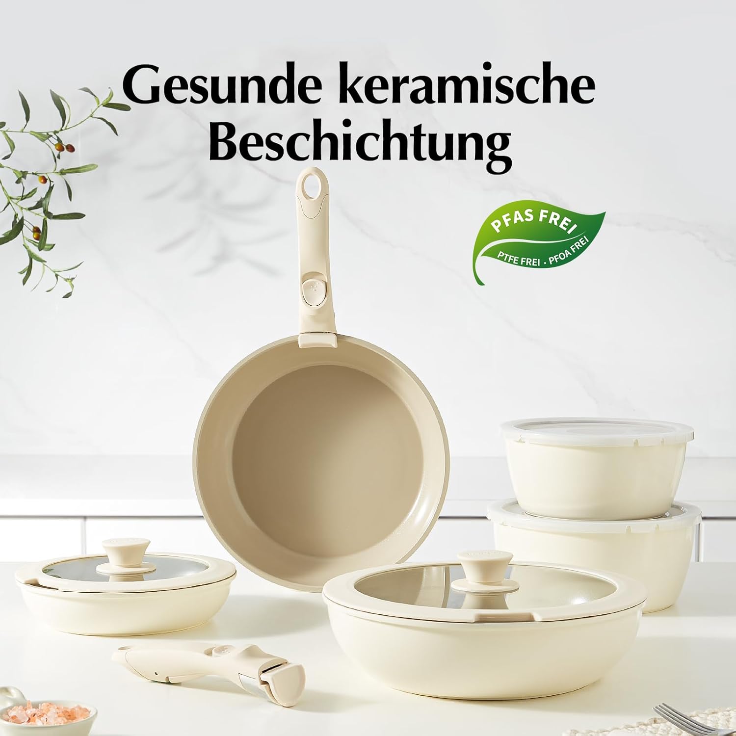 Redchef Topfsets Pfannenset 16-Teilig Antihaft-Keramik-Kochgeschirr-Set mit Abnehmbaren Griffen, Pfanne 20/26cm, Tiefe Bratpfanne 26cm, Topf 18/20cm, Stapelbar Topfset Für alle Herdarten, Ofenfest | قیمت یورویی 99.99€