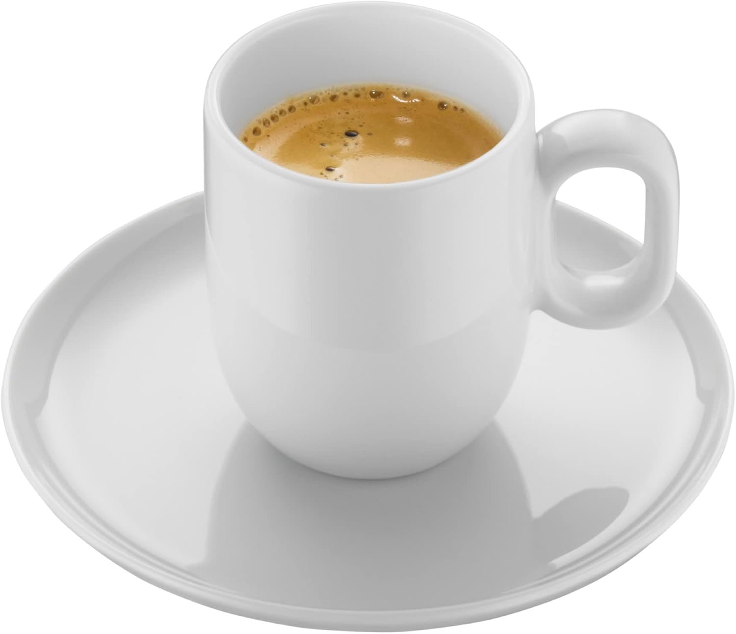 Inhalt: 2x Espresso Tasse mit Untertasse (Füllmenge 60 ml / 2,0 oz, Höhe 7,8 cm, Ø 5,4 cm) - Artikelnummer: 0695939440 Material: hochwertiger Porzellan - spülmaschinengeeignet Die hochwertigen Porzellantassen sind hinsichtlich Formgebung, Materialstärke und Volumen speziell auf den Genuss des vollen Aromas von Café Crème optimiert Die Ausbuchtung am Tassenboden passt wie ein Puzzleteil in das erhabene Gegenstück der Untertasse - für bestmögliche Standsicherheit Tassen und Untertassen sind stapelbar und ermöglichen so eine sehr platzsparende Aufbewahrung im Küchenschrank - Made in Germany | قیمت یورویی : 23.99€