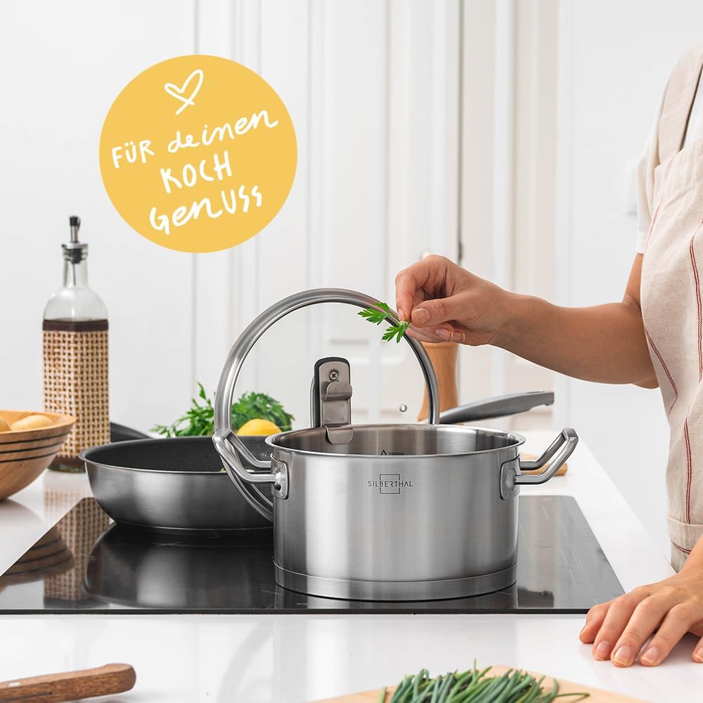 SILBERTHAL Edelstahl Topfset 2-teilig - Kochtopf 3,5l & 5L im Set für alle Herdarten inkl. Induktion & Ofenfest - Töpfe mit Glasdeckel - Spülmaschinenfest 2er Set | قیمت یورویی 84.9€