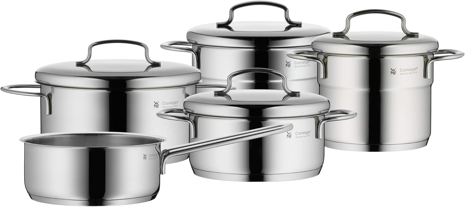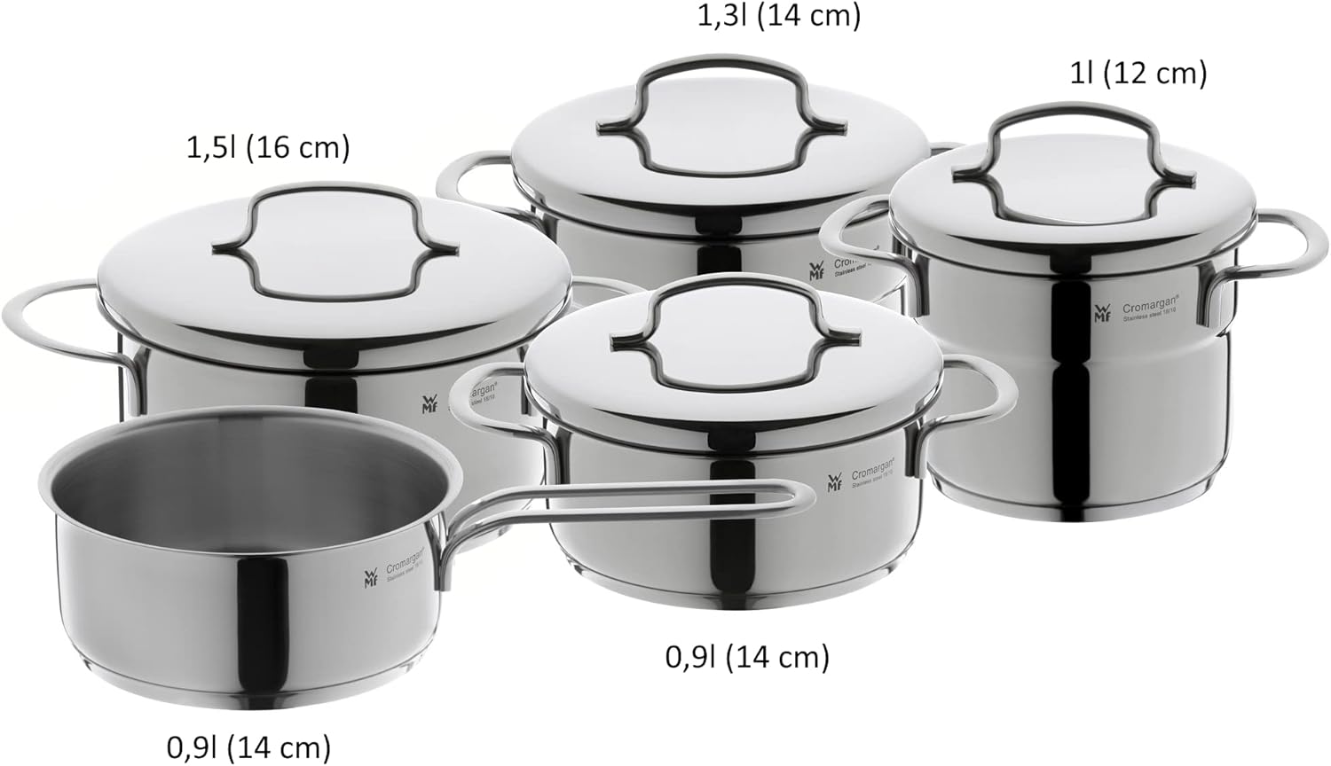 WMF Mini Topfset Induktion klein 5-teilig, Kochtopf Set mit Metalldeckel, Cromargan Edelstahl, Töpfe Set stapelbar, ideal für kleine Portionen | قیمت یورویی 117.9€